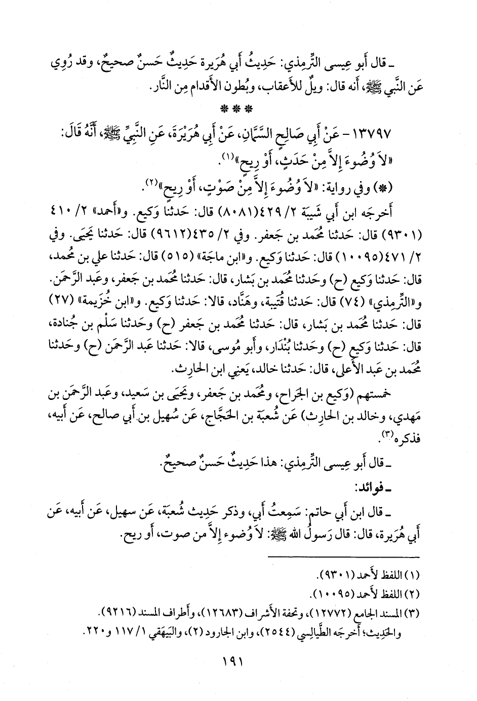 - قال عبد الرَّحمَن بن أبي حاتم الرازي: سمعت أبي، وذكر حديث شعبة، عن سهيل، عن أبيه، عن أبي هريرة، قال: قال رسول الله صَلى الله عَليه وسَلم: لا وضوء إلا من صوت، أو ريح.