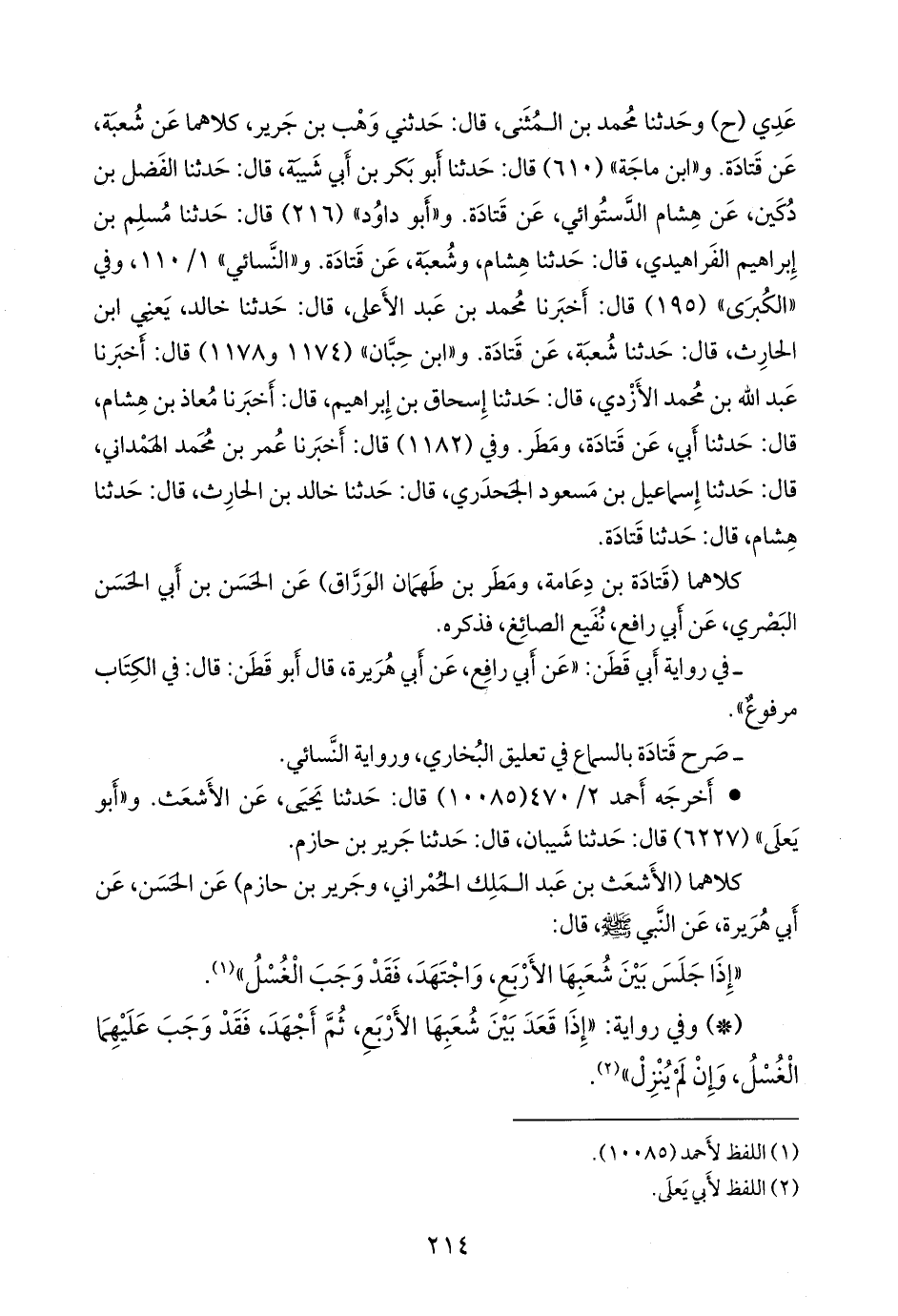 - وفي رواية: «إذا قعد بين شعبها الأربع، ثم أجهد، فقد وجب عليهما الغسل، وإن لم ينزل» (¬٢)