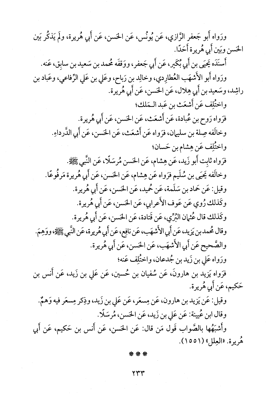 ورواه أَبو الأشهب العطاردي، وخالد بن رباح، وعلي بن علي الرفاعي، وعباد بن راشد، وسعيد بن أبي هلال، عن الحسن، عن أبي هريرة.