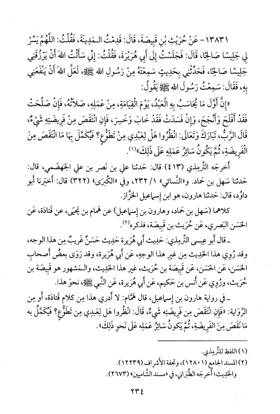 كلاهما (سهل بن حماد، وهارون بن إسماعيل) عن همام بن يحيى، عن قتادة، عن الحسن البصري، عن حريث بن قَبيصَة، فذكره (¬٢).