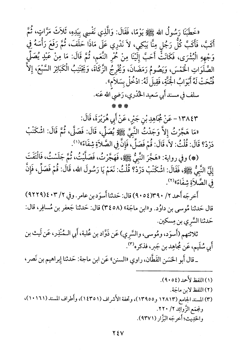 (¬٣) المسند الجامع (١٢٨١٣ و ١٣٩٥٥)، وتحفة الأشراف (١٤٣٥١)، وأطراف المسند (١٠١٦١)، ومَجمَع الزوائد ٢/ ٢٢٠.