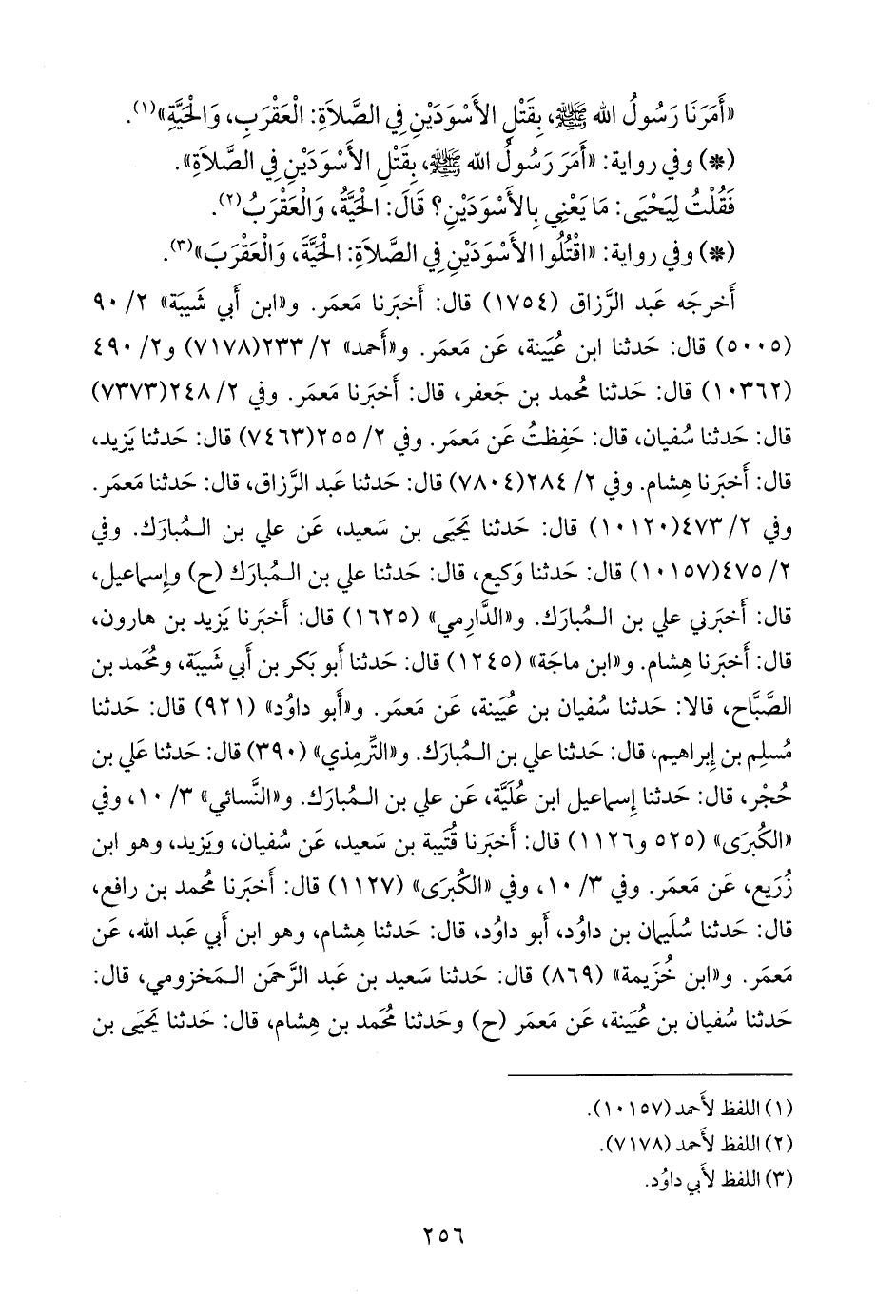 وفي ٢/ ٢٨٤ (٧٨٠٤) قال: حدثنا عبد الرزاق، قال: حدثنا مَعمَر. وفي ٢/ ٤٧٣ (١٠١٢٠) قال: حدثنا يحيى بن سعيد، عن علي بن المبارك. وفي ٢/ ٤٧٥ (١٠١٥٧) قال: حدثنا وكيع، قال: حدثنا علي بن المبارك (ح) وإسماعيل، قال: أخبرني علي بن المبارك. و «الدَّارِمي» (١٦٢٥) قال: أخبرنا يزيد بن هارون، قال: أخبرنا هشام. و «ابن ماجة» (١٢٤٥) قال: حدثنا أَبو بكر بن أبي شيبة، ومحمد بن الصباح، قالا: حدثنا سفيان بن عُيينة، عن معمر. و «أَبو داود» (٩٢١) قال: حدثنا مسلم بن إبراهيم، قال: حدثنا علي بن المبارك. و «التِّرمِذي» (٣٩٠) قال: حدثنا علي بن حُجْر، قال: حدثنا إسماعيل ابن عُلَية، عن علي بن المبارك. و «النَّسَائي» ٣/ ١٠، وفي «الكبرى» (٥٢٥ و ١١٢٦) قال: أخبرنا قتيبة بن سعيد، عن سفيان، ويزيد، وهو ابن زُريع، عن معمر. وفي ٣/ ١٠، وفي «الكبرى» (١١٢٧) قال: أخبرنا محمد بن رافع، قال: حدثنا سليمان بن داود، أَبو داود، قال: حدثنا هشام، وهو ابن أبي عبد الله، عن معمر. و «ابن خزيمة» (٨٦٩) قال: حدثنا سعيد بن عبد الرَّحمَن المخزومي، قال: حدثنا سفيان بن عُيينة، عن معمر (ح) وحدثنا محمد بن هشام، قال: حدثنا يحيى بن