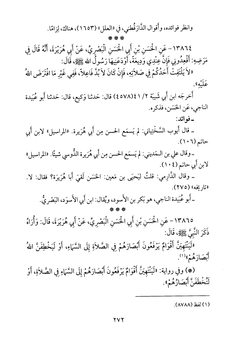 - قلنا: إِسناده ضعيفٌ؛ الحسن بن أَبي الحسن البَصري لم يسمع من أَبي هريرة. انظر فوائد الحديث رقم (١٣٦٤٢).