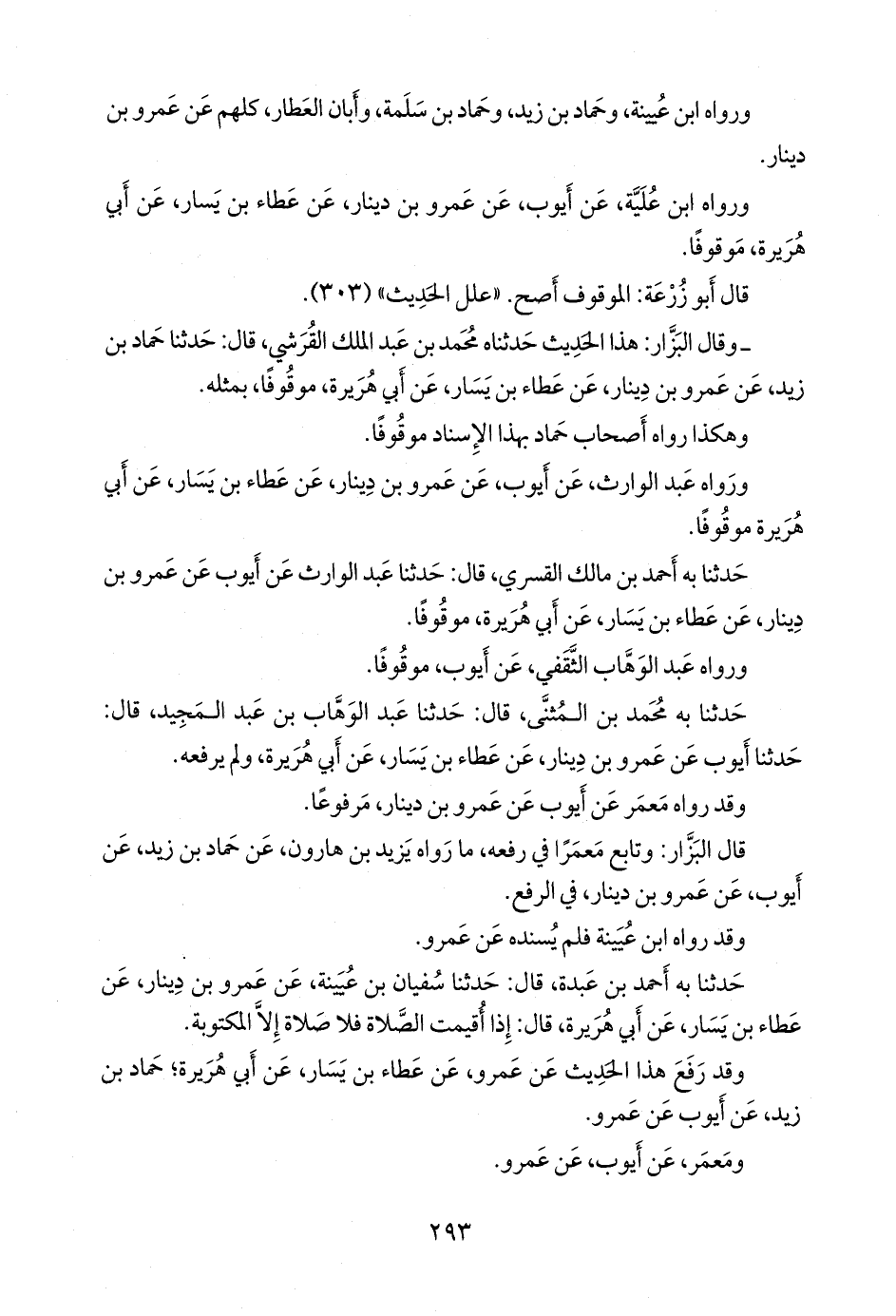 - وقال البزار: هذا الحديث حدثناه محمد بن عبد الملك القرشي، قال: حدثنا حماد بن زيد، عن عَمرو بن دينار، عن عطاء بن يسار، عن أبي هريرة، موقوفًا، بمثله.