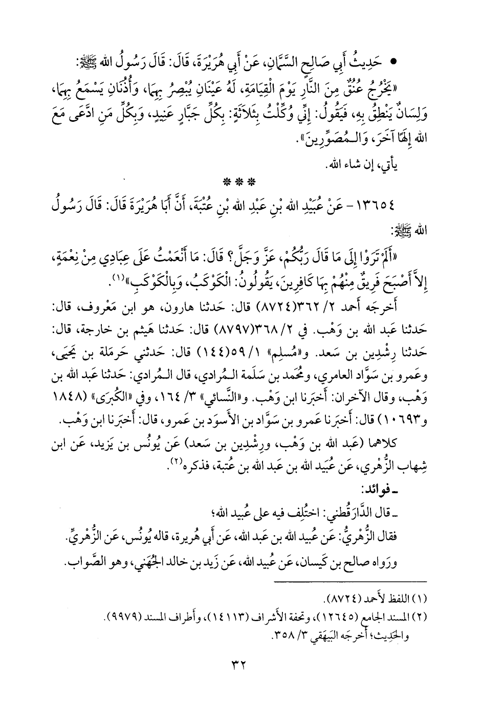 (¬٢) المسند الجامع (١٢٦٤٥)، وتحفة الأشراف (١٤١١٣)، وأطراف المسند (٩٩٧٩).