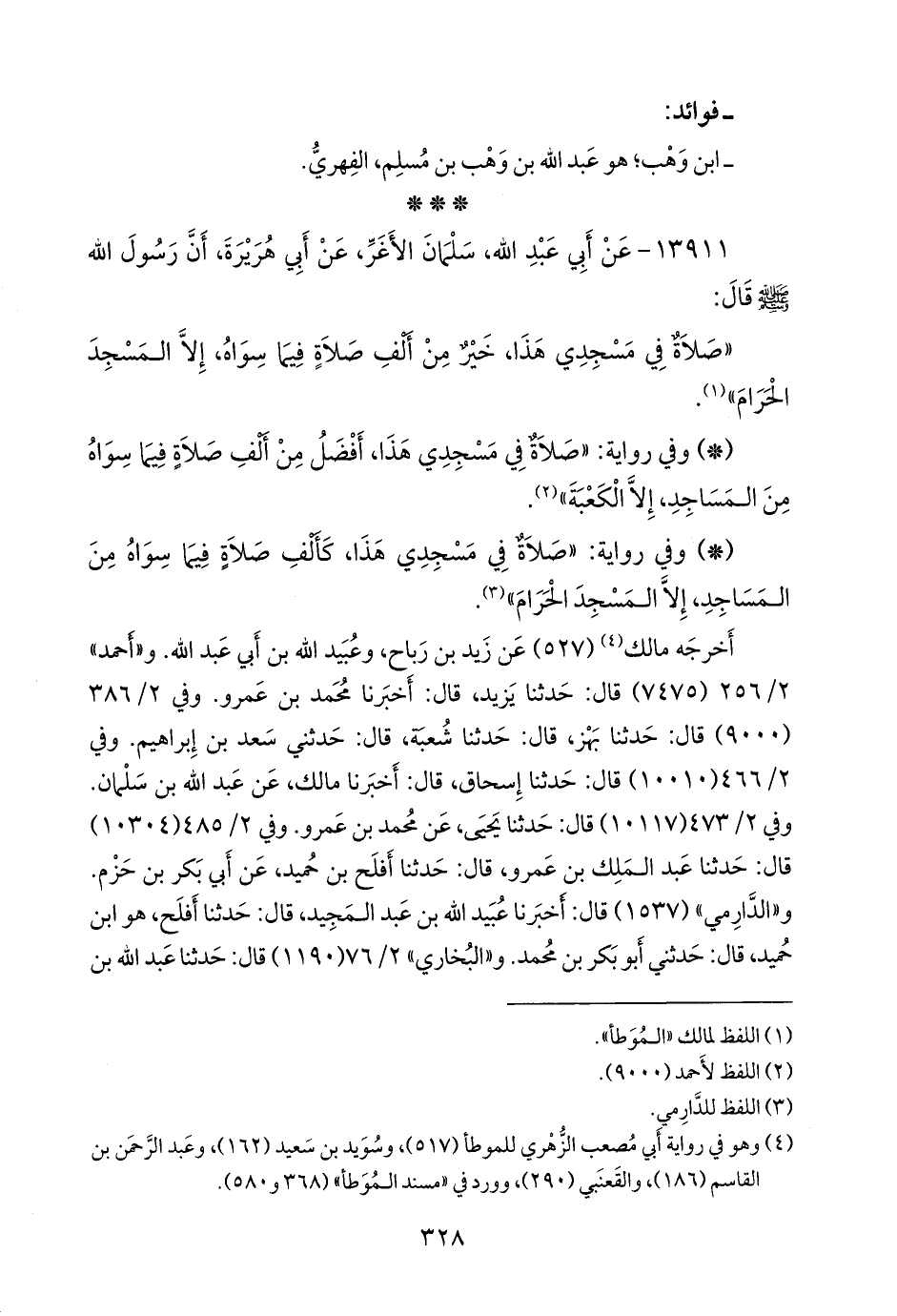 (¬٤) وهو في رواية أبي مصعب الزُّهْري للموطأ (٥١٧)، وسويد بن سعيد (١٦٢)، وعبد الرَّحمَن بن القاسم (١٨٦)، والقَعنَبي (٢٩٠)، وورد في «مسند الموطأ» (٣٦٨ و ٥٨٠).