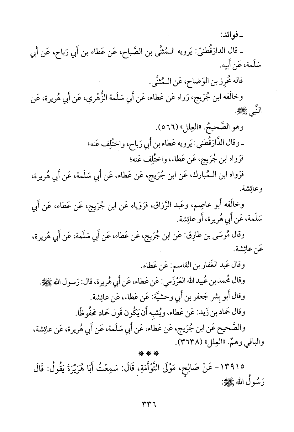 - قال الدارقُطني: يرويه المثنى بن الصباح، عن عطاء بن أبي رباح، عن أبي سلمة، عن أبيه.