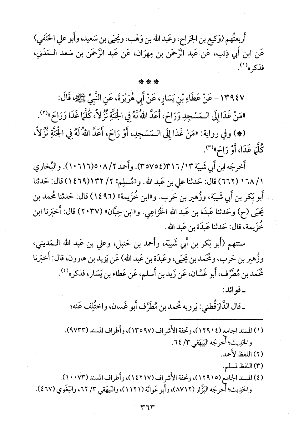 (¬٣) المسند الجامع (١٢٩١٥)، وتحفة الأشراف (١٤٢١٧)، وأطراف المسند (١٠٠٧٣).