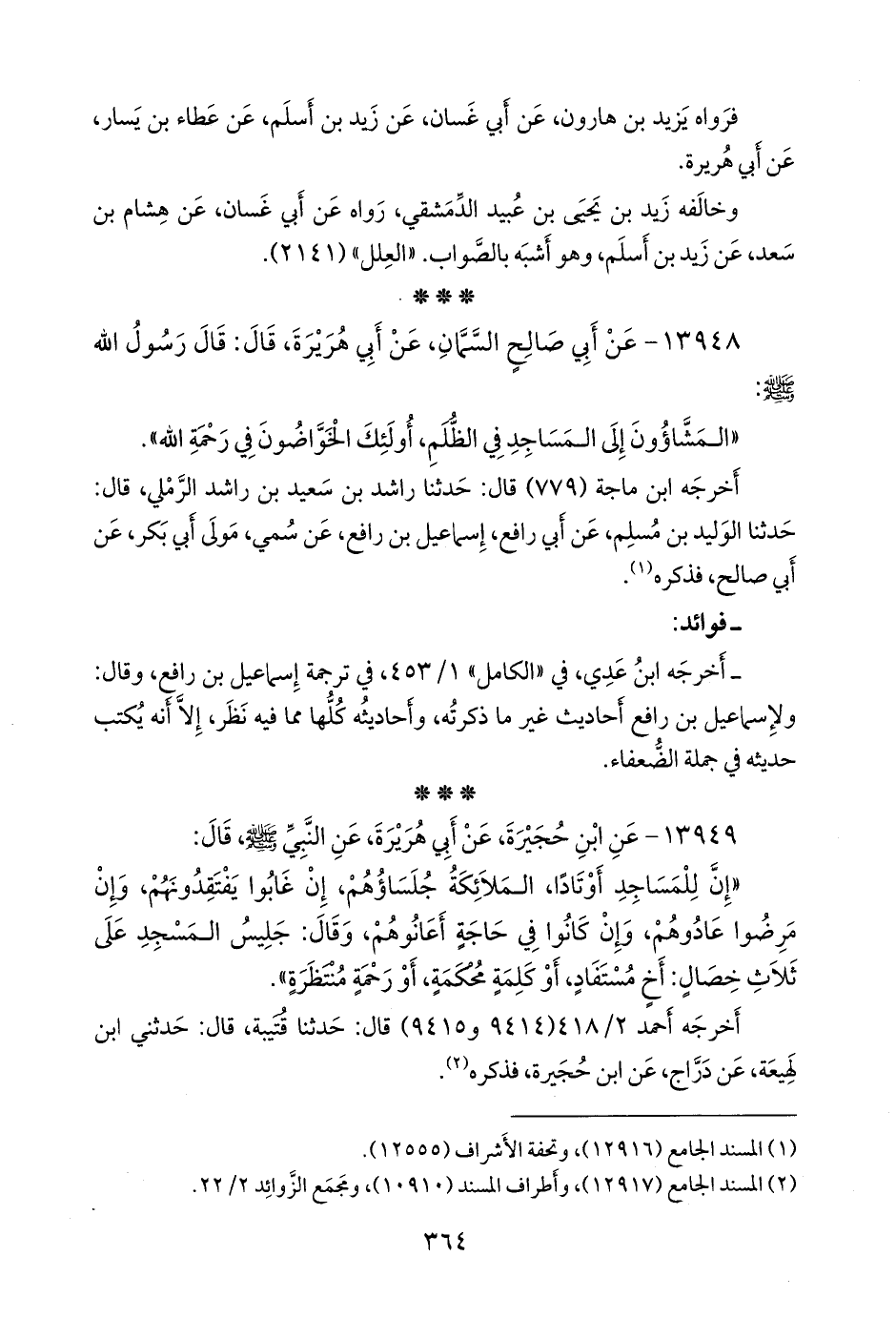 (¬١) المسند الجامع (١٢٩١٧)، وأطراف المسند (١٠٩١٠)، ومَجمَع الزوائد ٢/ ٢٢.