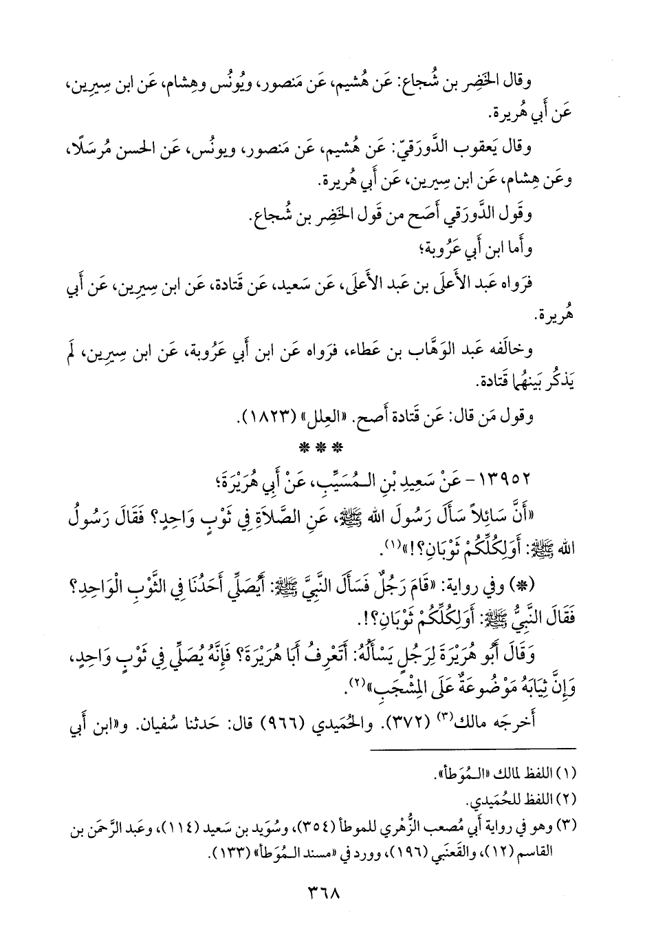(¬٣) وهو في رواية أبي مصعب الزُّهْري للموطأ (٣٥٤)، وسويد بن سعيد (١١٤)، وعبد الرَّحمَن بن القاسم (١٢)، والقَعنَبي (١٩٦)، وورد في «مسند الموطأ» (١٣٣).