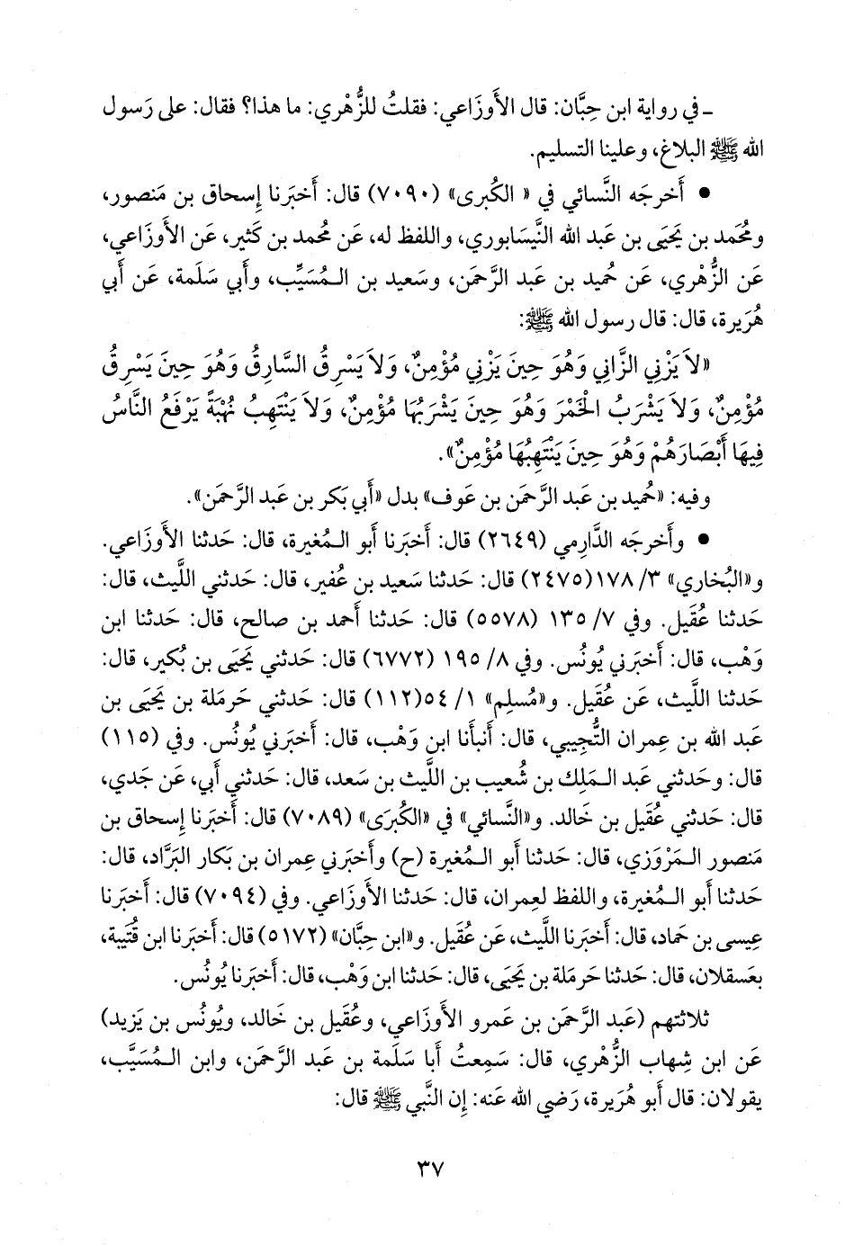 • وأخرجه الدَّارِمي (٢٦٤٩) قال: أخبرنا أَبو المغيرة، قال: حدثنا الأوزاعي. و «البخاري» ٣/ ١٣٦ (٢٤٧٥) قال: حدثنا سعيد بن عفير، قال: حدثني الليث، قال: حدثنا عُقَيل. وفي ٧/ ١٠٤ (٥٥٧٨) قال: حدثنا أحمد بن صالح، قال: حدثنا ابن وهب، قال: أخبرني يونس. وفي ٨/ ١٥٧ (٦٧٧٢) قال: حدثني يحيى بن بُكير، قال: حدثنا الليث، عن عُقيل. و «مسلم» ١/ ٥٤ (١١٢) قال: حدثني حَرملة بن يحيى بن عبد الله بن عمران التجيبي، قال: أنبأنا ابن وهب، قال: أخبرني يونس. وفي (١١٥) قال: وحدثني عبد الملك بن شعيب بن الليث بن سعد، قال: حدثني أبي، عن جدي، قال: حدثني عُقيل بن خالد. و «النَّسَائي» في «الكبرى» (٧٠٨٩) قال: أخبرنا إسحاق بن منصور المَرْوَزي، قال: حدثنا أَبو المغيرة (ح) وأخبرني عمران بن بكار البراد، قال: حدثنا أَبو المغيرة، واللفظ لعمران، قال: حدثنا الأوزاعي. وفي (٧٠٩٤) قال: أخبرنا عيسى بن حماد، قال: أخبرنا الليث، عن عُقيل. و «ابن حِبَّان» (٥١٧٢) قال: أخبرنا ابن قتيبة، بعسقلان، قال: حدثنا حَرملة بن يحيى، قال: حدثنا ابن وهب، قال: أخبرنا يونس.
