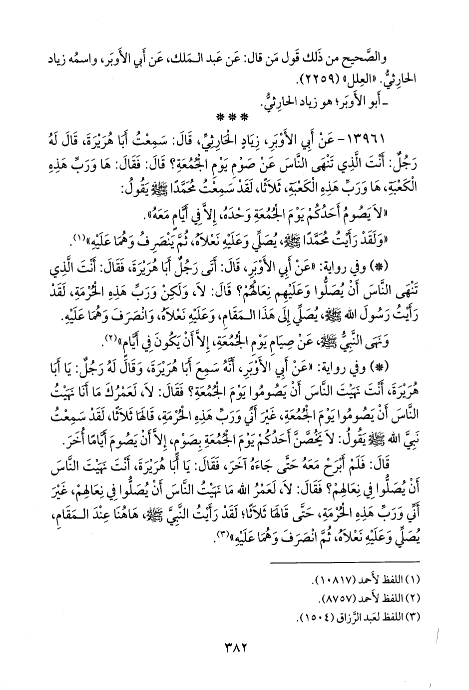 ١٣٩٦١ - عن أبي الأوبر، زياد الحارثي، قال: سمعت أبا هريرة، قال له رجل: أنت الذي تنهى الناس عن صوم يوم الجمعة؟ قال: فقال: ها ورب هذه الكعبة، ها ورب هذه الكعبة، ثلاثا، لقد سمعت محمدا صَلى الله عَليه وسَلم يقول: