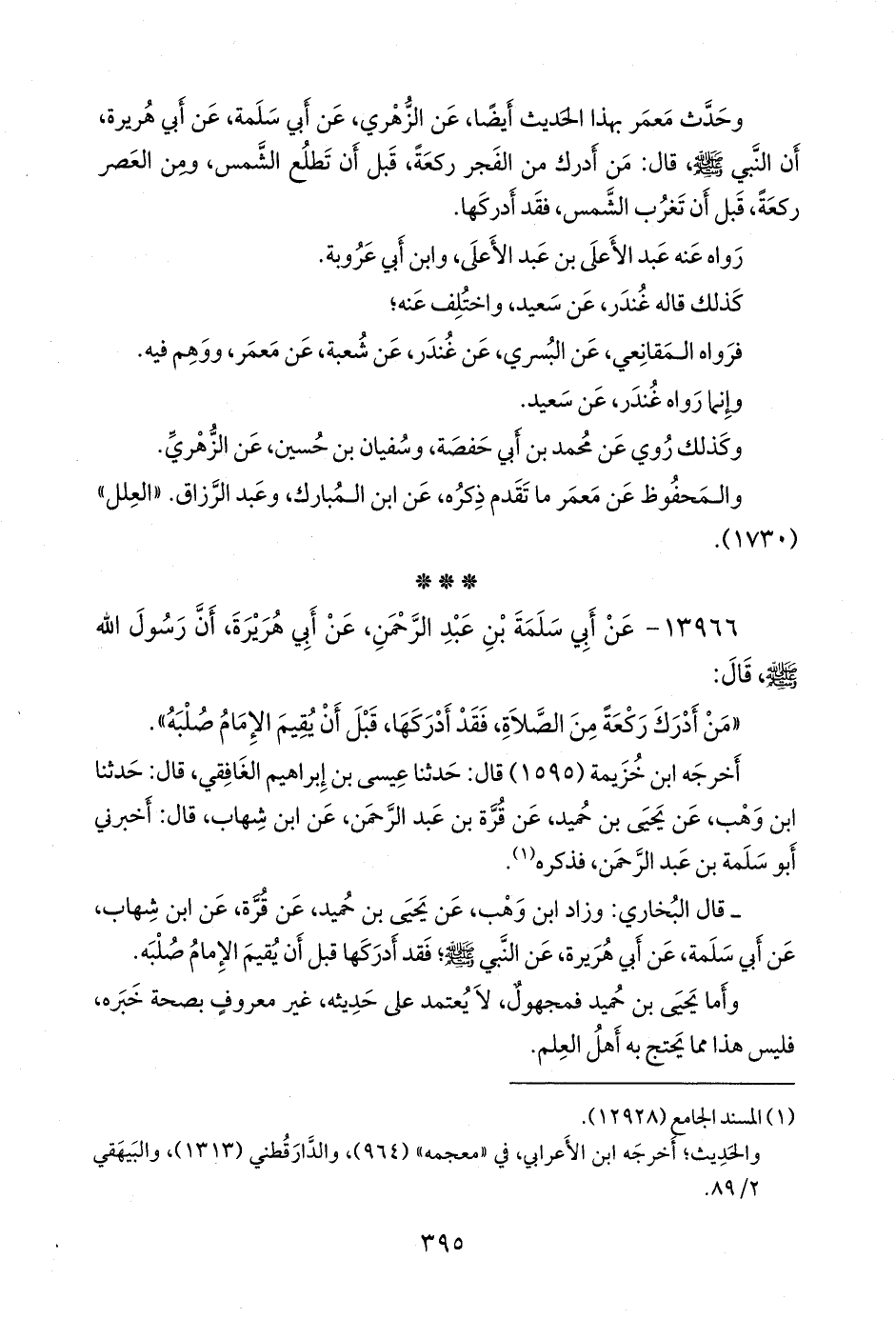 ١٣٩٦٦ - عن أبي سلمة بن عبد الرَّحمَن، عن أبي هريرة، أن رسول الله صَلى الله عَليه وسَلم قال: