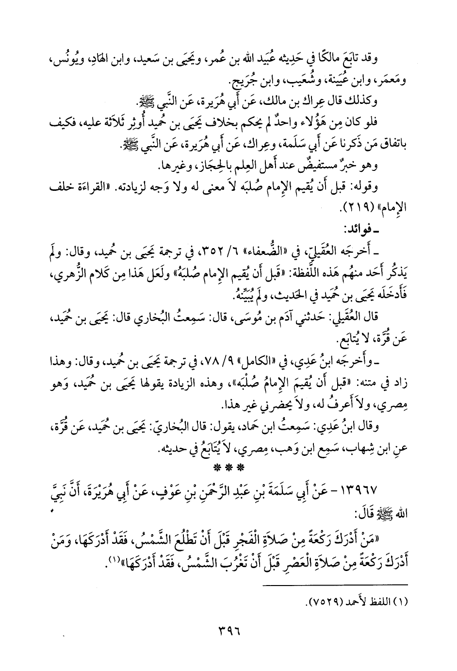 - وفي رواية: «إذا أدرك أحدكم أول سجدة من الصبح، قبل أن تطلع الشمس، فليتم صلاته، وإذا أدرك أول سجدة من صلاة العصر، قبل أن تغرب الشمس، فليتم صلاته» (¬٥).