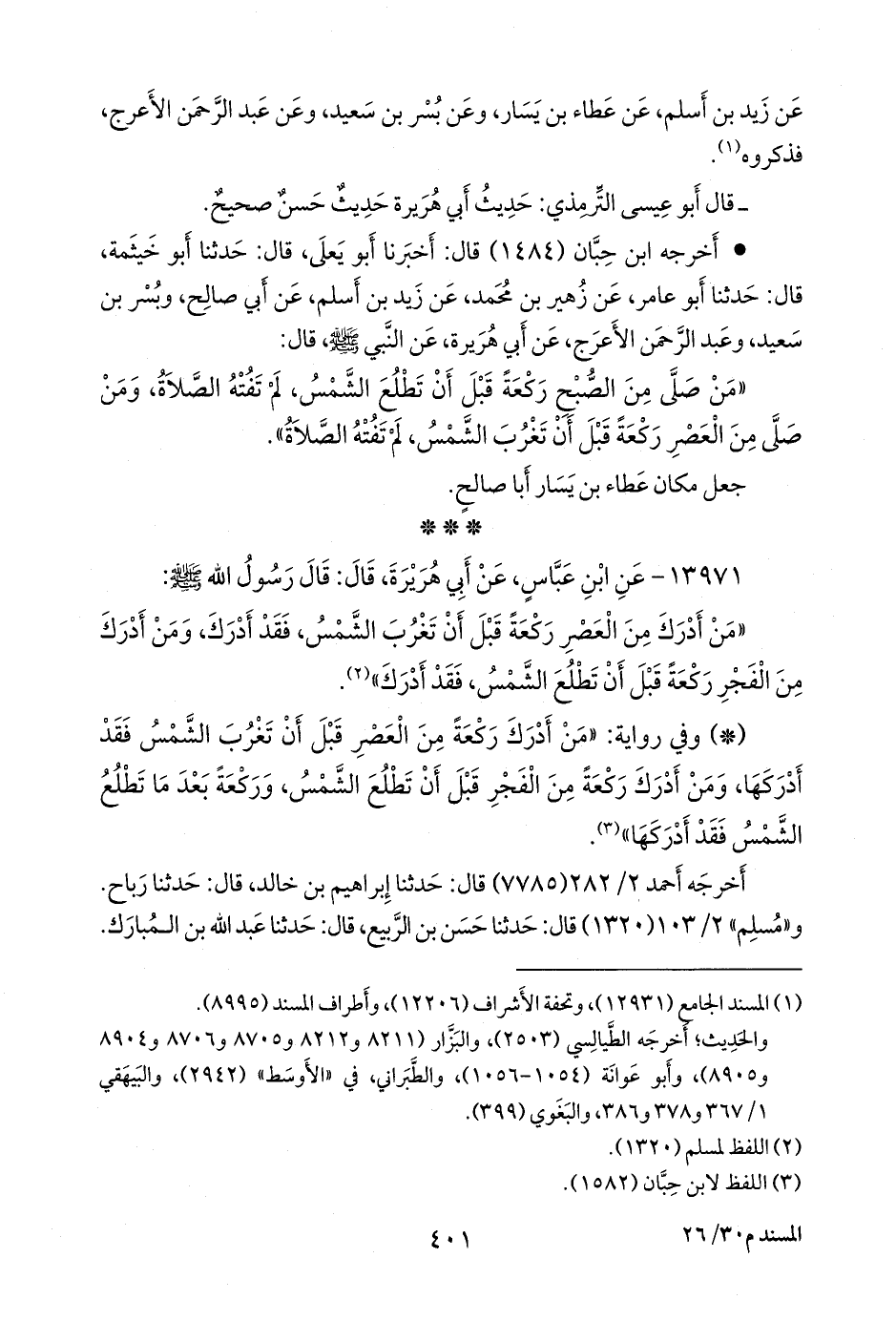- وفي رواية: «من أدرك ركعة من العصر قبل أن تغرب الشمس فقد أدركها، ومن أدرك ركعة من الفجر قبل أن تطلع الشمس، وركعة بعد ما تطلع الشمس فقد أدركها» (¬٢).