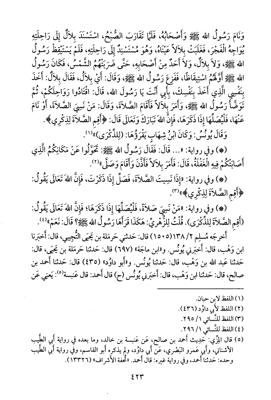يونس في هذا الحديث {للذكرى} وفي (٤٣٦) قال: حدثنا موسى بن إسماعيل، قال: حدثنا أبان، قال: حدثنا معمر. و «التِّرمِذي» (٣١٦٣) قال: حدثنا محمود بن غَيلان، قال: حدثنا النضر بن شميل، قال: أخبرنا صالح بن أبي الأخضر. و «النَّسَائي» ١/ ٢٩٥ قال: أخبرنا عبد الأعلى بن واصل بن عبد الأعلى، قال: حدثنا يَعلى، قال: حدثنا محمد بن إسحاق. قال عبد الأعلى: حدثنا به يَعلى مختصرا. وفي ١/ ٢٩٦ قال: أخبرنا عَمرو بن سواد بن الأسود بن عَمرو، قال: أنبأنا ابن وهب، قال: أنبأنا يونس. و «ابن حِبَّان» (٢٠٦٩) قال: أخبرنا محمد بن الحسن بن قتيبة، والحسن بن سفيان، قالا: حدثنا حَرملة بن يحيى، قال: حدثنا ابن وهب، قال: أخبرنا يونس.