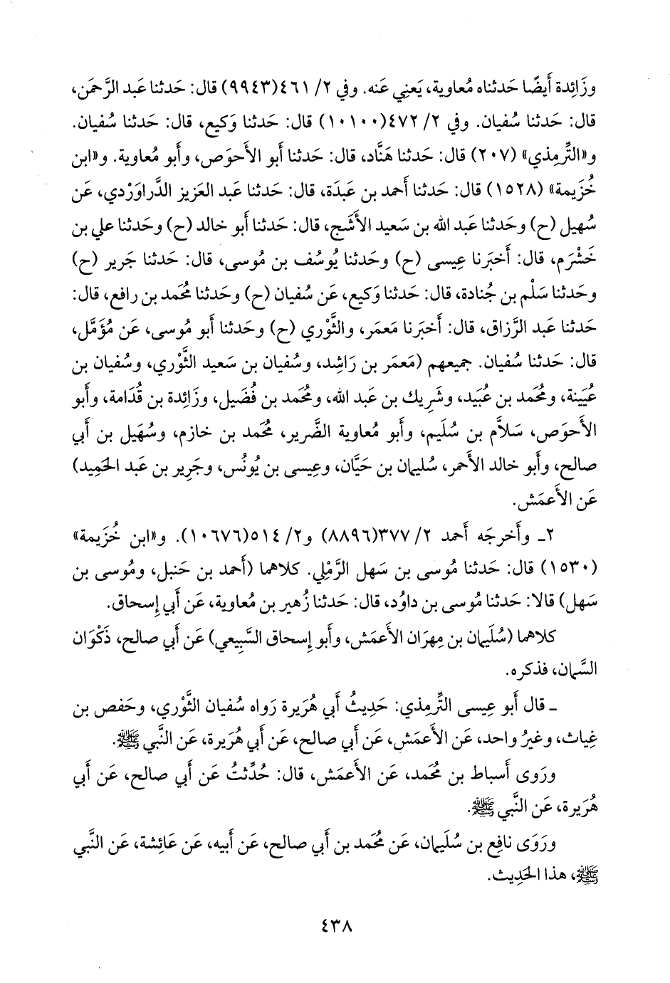 - قال التِّرمِذي: حديث أبي هريرة رواه سفيان الثوري، وحفص بن غياث، وغير واحد، عن الأعمش، عن أبي صالح، عن أبي هريرة، عن النبي صَلى الله عَليه وسَلم.