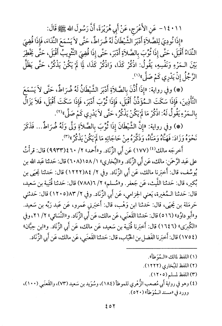 (¬٤) وهو في رواية أبي مصعب الزُّهْري للموطأ (١٨٤)، وسويد بن سعيد (٧٣)، والقَعنَبي (١٠٠)، وورد في «مسند الموطأ» (٥٢٠).