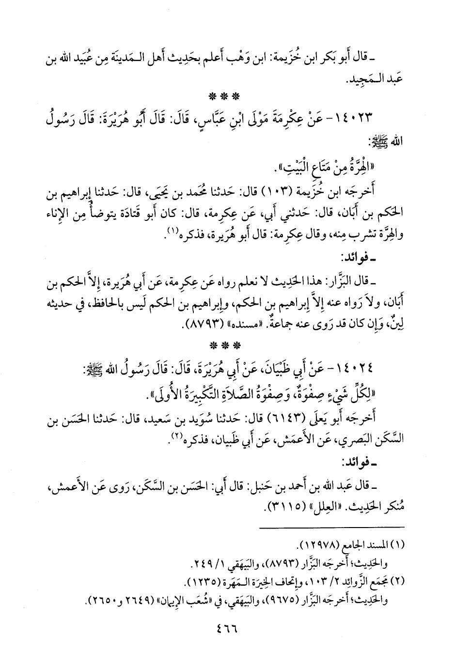 (¬١) مَجمَع الزوائد ٢/ ١٠٣، وإتحاف الخِيرَة المَهَرة (١٢٣٥).