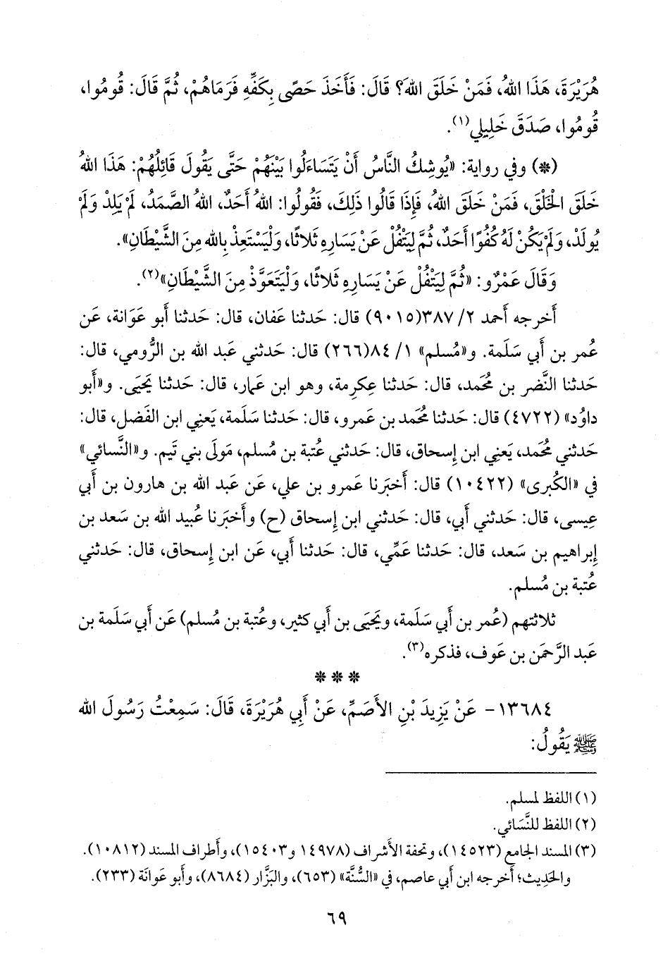 (¬٢) المسند الجامع (١٤٥٢٣)، وتحفة الأشراف (١٤٩٧٨ و ١٥٤٠٣)، وأطراف المسند (١٠٨١٢).