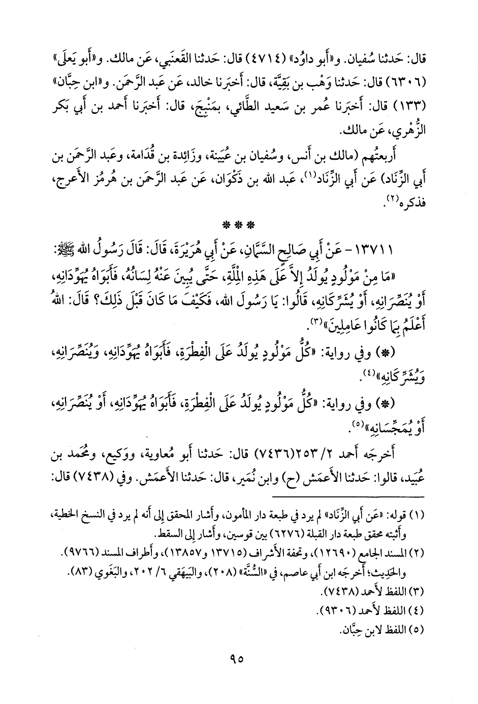 - وفي رواية: «كل مولود يولد على الفطرة، فأَبواه يهودانه، أو ينصرانه، أو يمجسانه» (¬٣).