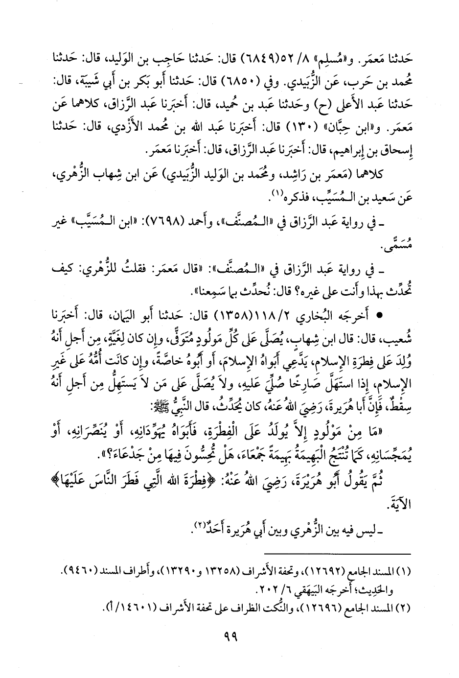- في رواية عبد الرزاق في «المُصَنَّف»: «قال معمر: فقلت للزهري: كيف تحدث بهذا وأنت على غيره؟ قال: نحدث بما سمعنا».