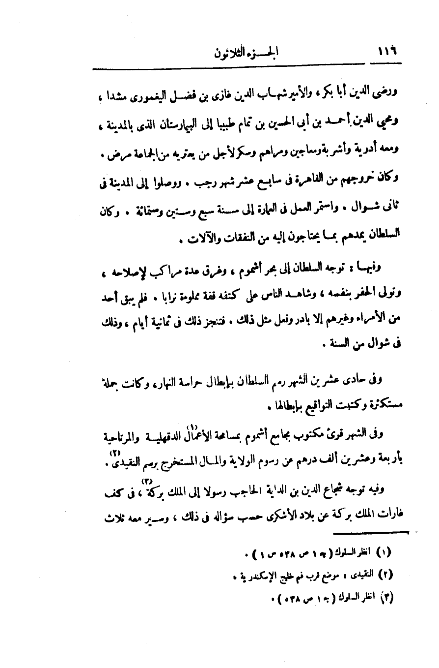 وفيها: توجه السلطان إلى بحر أشموم، وغرق عدة مراكب لإصلاحه، وتولى الحفر بنفسه، وشاهد الناس على كتفه قفة مملوءة نرابا. فلم يبق أحد من الأمراء وغيرهم إلا بادر وفعل مثل ذلك. فتنجز ذلك فى ثمانية أيام، وذلك فى شوال من السنة.