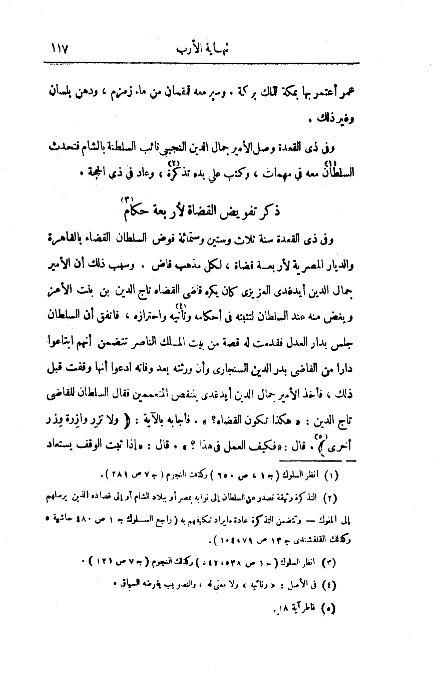 وفى ذى القعدة وصل الأمير جمال الدين النجيبى نائب السلطنة بالشام فتحدث السلطان «1» معه فى مهمات، وكتب على يده تذكرة «2» ، وعاد فى ذى الحجة.