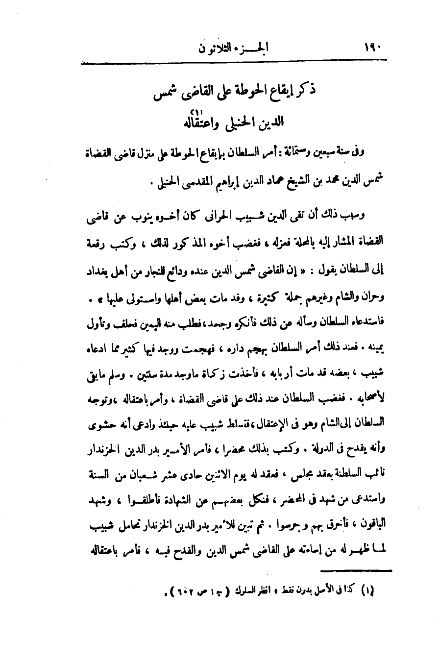 وفى سنة سبعين وستمائة: أمر السلطان بإيقاع الحوطة على منزل قاضى القضاة شمس الدين محمد بن الشيخ عماد الدين إبراهيم المقدسى الحنبلى.