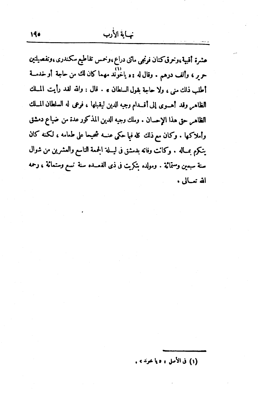 عشرة أقبية، وخرق كتان فرنجى مائتى دراع، وخمس تقاطيع سكندرى، وتفصيلتين حرير، وألف درهم. وقال له: «ياخوند «1» مهما كان لك من حاجة أو خدمة أطلب ذلك منى، ولا حاجة بقول السلطان» . قال: والله لقد رأيت الملك الظاهر وقد أهوى إلى أقدام وجيه الدين ليقبلها، فرعى له السلطان الملك الظاهر حق هذا الإحسان. وملك وجيه الدين المذكور عدة من ضياع دمشق وأملاكها. وكان مع ذلك كله فيما حكى عنه شحيحا على طعامه، لكنه كان يتكرم بماله. وكانت وفاته بدمشق فى ليلة الجمعة التاسع والعشرين من شوال سنة سبعين وستمائة. ومولده بتكريت فى ذى القعده سنة تسع وستمائة، رحمه الله تعالى.
