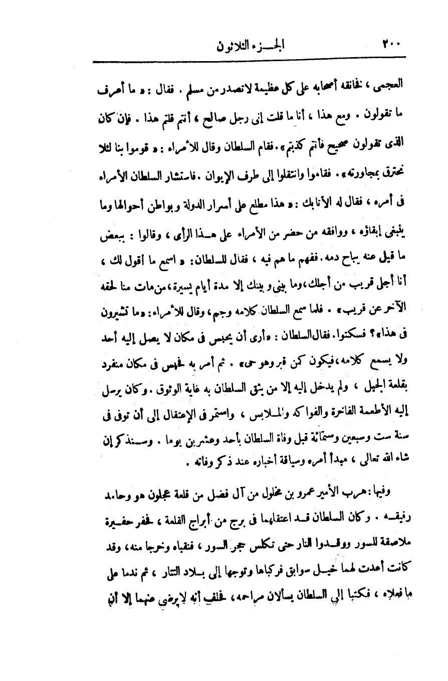 وفيها: هرب الأمير عمرو بن مخلول من آل فضل من قلعة عجلون هو وحامد رفيقه. وكان السلطان قد اعتقلهما فى برج من أبراج القلعة، فحفر حفيرة ملاصقة للسور ووقدوا النار حتى تكلس حجر السور، فنقباه وخرجا منه، وقد كانت أعدت لهما خيل سوابق فركباها وتوجها إلى بلاد التتار، ثم ندما على ما فعلاه، فكتبا إلى السلطان يسألان مراحمه، فحلف أنه لا يرضى عنهما إلا أن