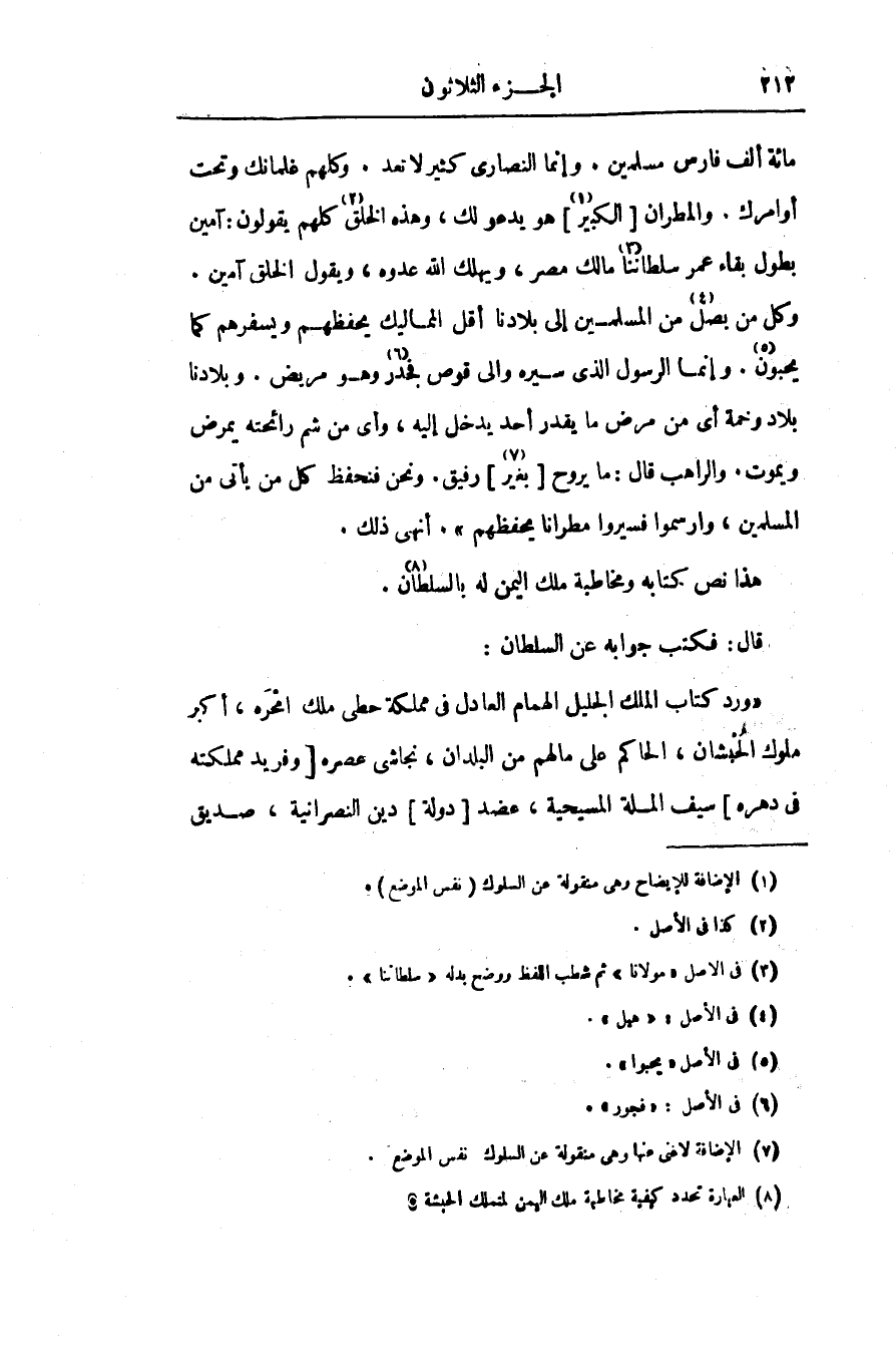 هذا نص كتابه ومخاطبة ملك اليمن له بالسلطان «8» .