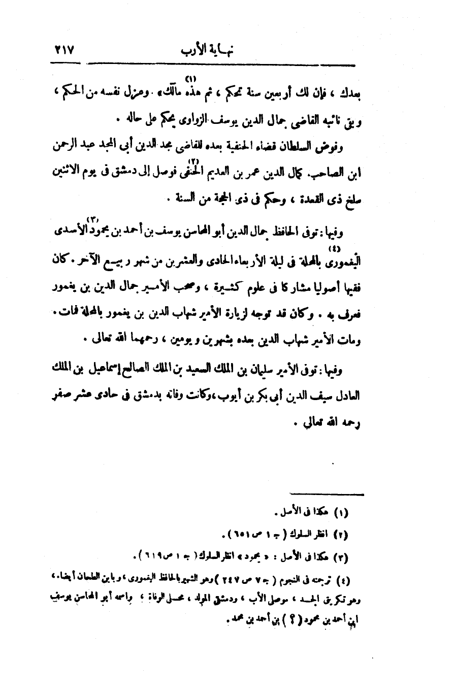 وفيها: توفى الأمير سليمان بن الملك السعيد بن الملك الصالح إسماعيل بن الملك العادل سيف الدين أبى بكر بن أيوب، وكانت وفاته بدمشق فى حادى عشر صفر رحمه الله تعالى.