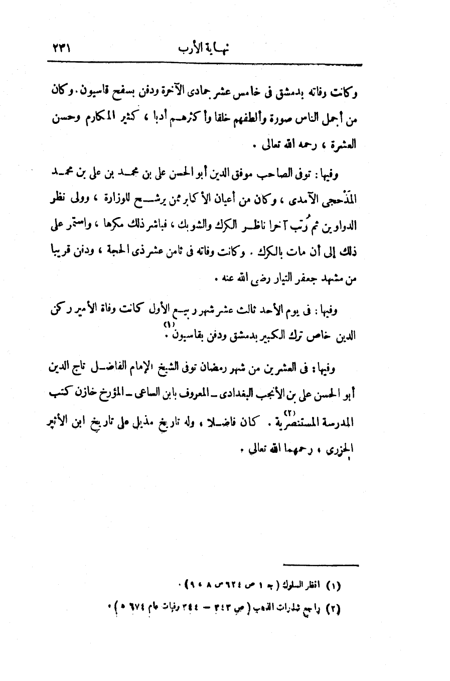وكانت وفاته بدمشق فى خامس عشر جمادى الآخرة ودفن بسفح قاسيون. وكان من أجمل الناس صورة وألطفهم خلقا وأكثرهم أدبا، كثير المكارم وحسن العشرة، رحمه الله تعالى.