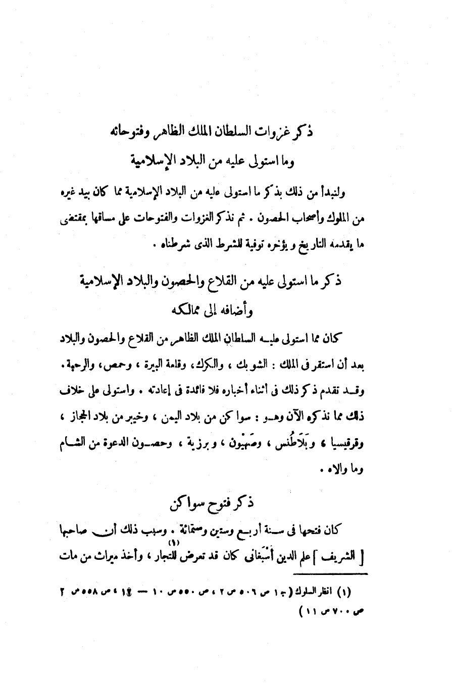 ولنبدأ من ذلك بذكر ما استولى عليه من البلاد الإسلامية مما كان بيد غيره من الملوك وأصحاب الحصون. ثم نذكر الغزوات والفتوحات على مساقها بمقتضى ما يقدمه التاريخ ويؤخره توفية للشرط الذى شرطناه.