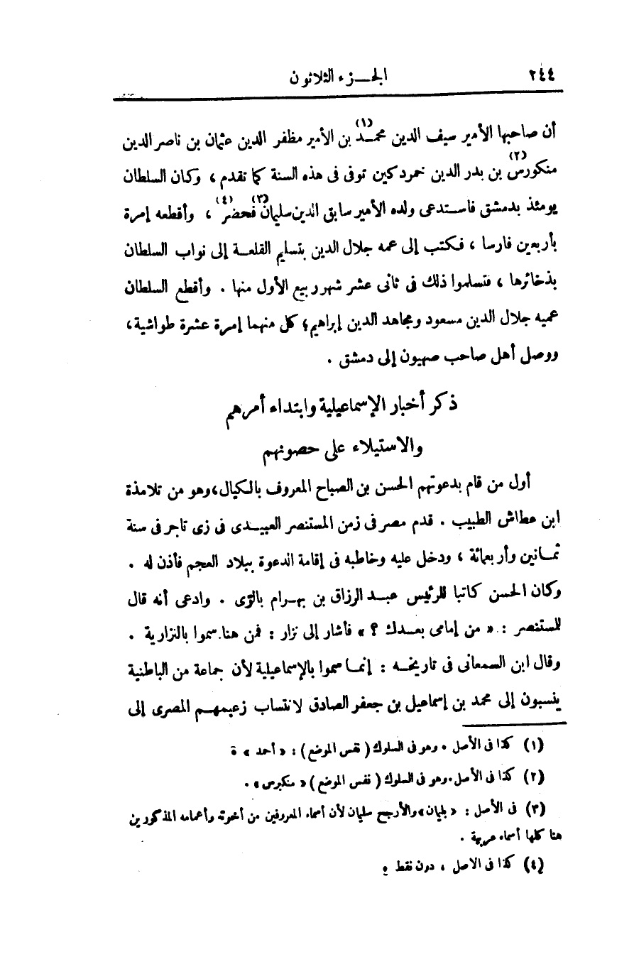 ذكر أخبار الإسماعيلية وابتداء أمرهم والاستيلاء على حصونهم