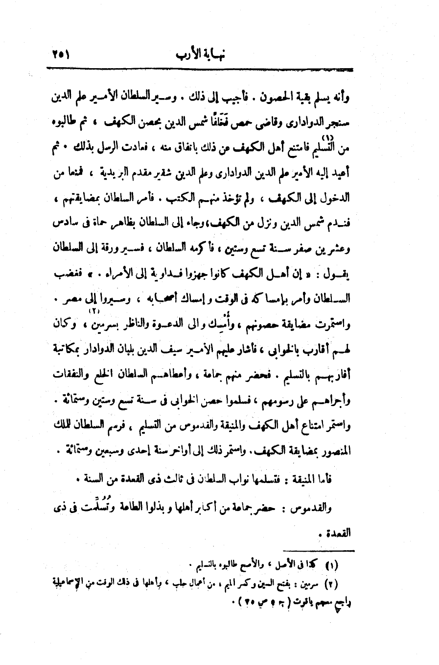 والقدموس: حضر جماعة من أكابر أهلها وبذلوا الطاعة وتسلّمت فى ذى القعدة.