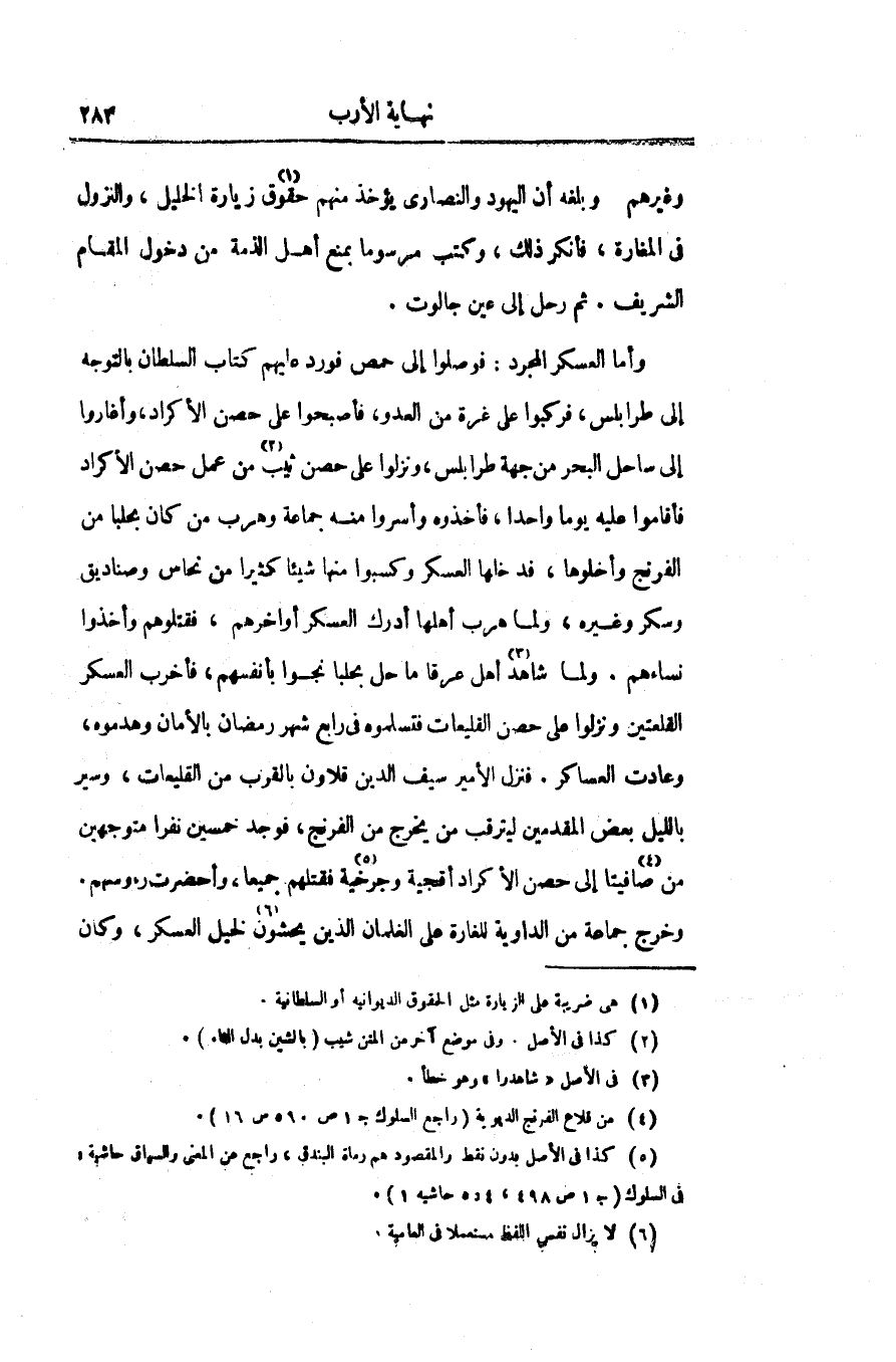 وأما العسكر المجرد: فوصلوا إلى حمص فورد عليهم كتاب السلطان بالتوجه إلى طرابلس، فركبوا على غرة من العدو، فأصبحوا على حصن الأكراد، وأغاروا إلى ساحل البحر من جهة طرابلس، ونزلوا على حصن ثيب «2» من عمل حصن الأكراد فأقاموا عليه يوما واحدا، فأخذوه وأسروا منه جماعة وهرب من كان بحلبا من الفرنج وأخلوها، فدخلها العسكر وكسبوا منها شيئا كثيرا من نحاس وصناديق وسكر وغيره، ولما هرب أهلها أدرك العسكر أواخرهم، فقتلوهم وأخذوا نساءهم. ولما شاهد «3» أهل عرقا ما حل بحلبا نجوا بأنفسهم، فأخرب العسكر القلعتين ونزلوا على حصن القليعات فتسلموه فى رابع شهر رمضان بالأمان وهدموه، وعادت العساكر. فنزل الأمير سيف الدين قلاون بالقرب من القليعات، وسير بالليل بعض المقدمين ليترقب من يخرج من الفرنج، فوجد خمسين نفرا متوجهين من صافيتا «4» إلى حصن الأكراد أقجية وجرخية «5» فقتلهم جميعا، وأحضرت رءوسهم.