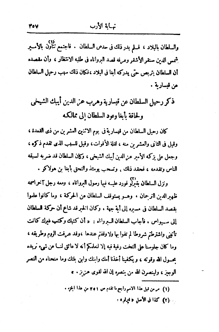 والسلطان بالبلاد، فلم يدر ذلك فى حدس السلطان. فاجتمع تتاون «1» بالأمير شمس الدين سنقر الأشقر وعرفه قصد البرواناه فى طلبه الانتظار، وأن مقصده أن السلطان يتربص حتى يدركه أبغا فى البلاد، فكان ذلك سبب رحيل السلطان عن قيسارية.