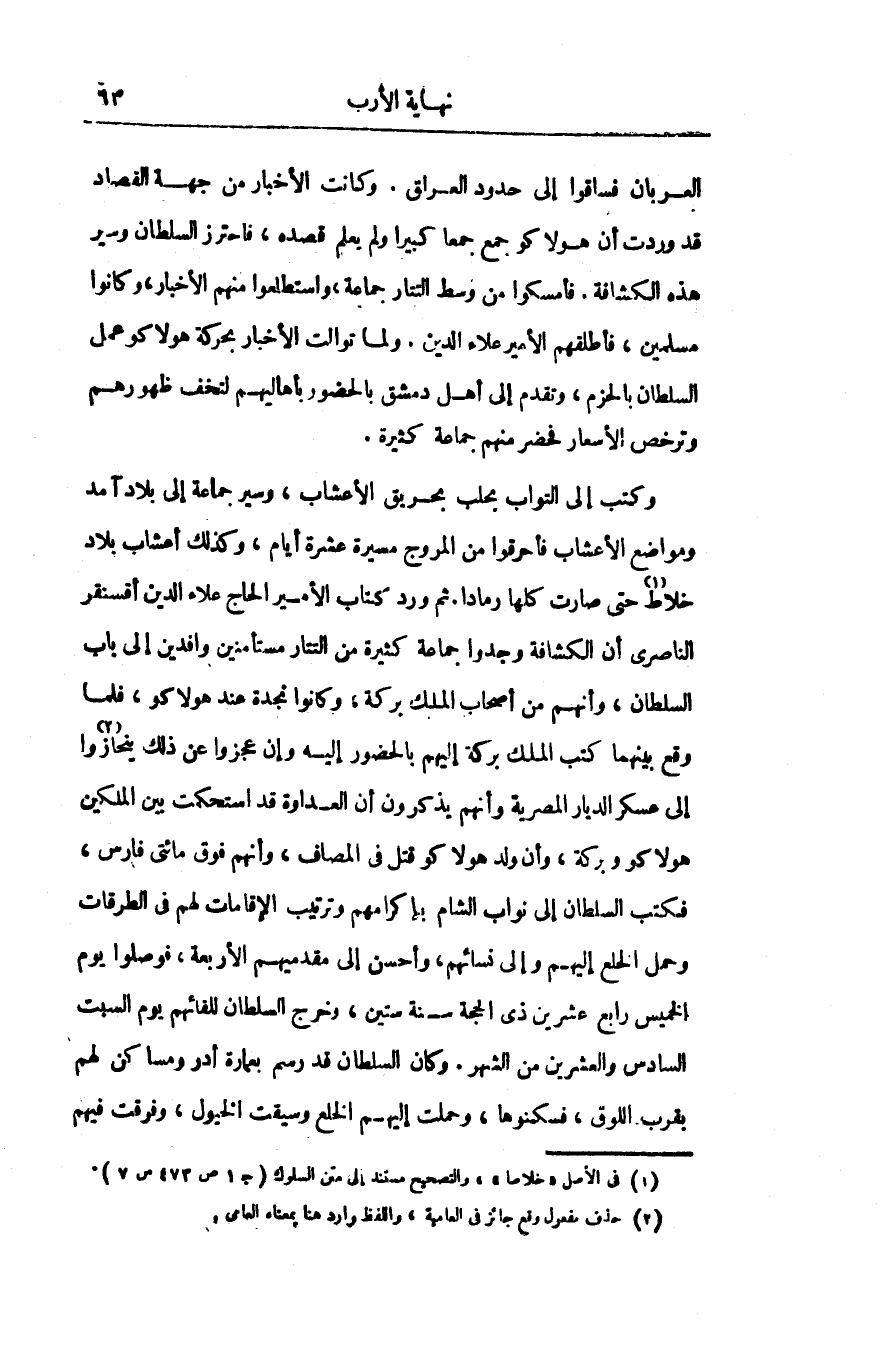 العربان فساقوا إلى حدود العراق. وكانت الأخبار من جهة القصاد قد وردت أن هولاكو جمع جمعا كبيرا ولم يعلم قصده، فاحترز السلطان وسير هذه الكشافة. فأمسكوا من وسط التتار جماعة، واستطلعوا منهم الأخبار، وكانوا مسلمين، فأطلقهم الأمير علاء الدين. ولما توالت الأخبار بحركة هولاكو عمل السلطان بالحزم، وتقدم إلى أهل دمشق بالحضور بأهاليهم لتخف ظهورهم وترخص الأسعار فحضر منهم جماعة كثيرة.