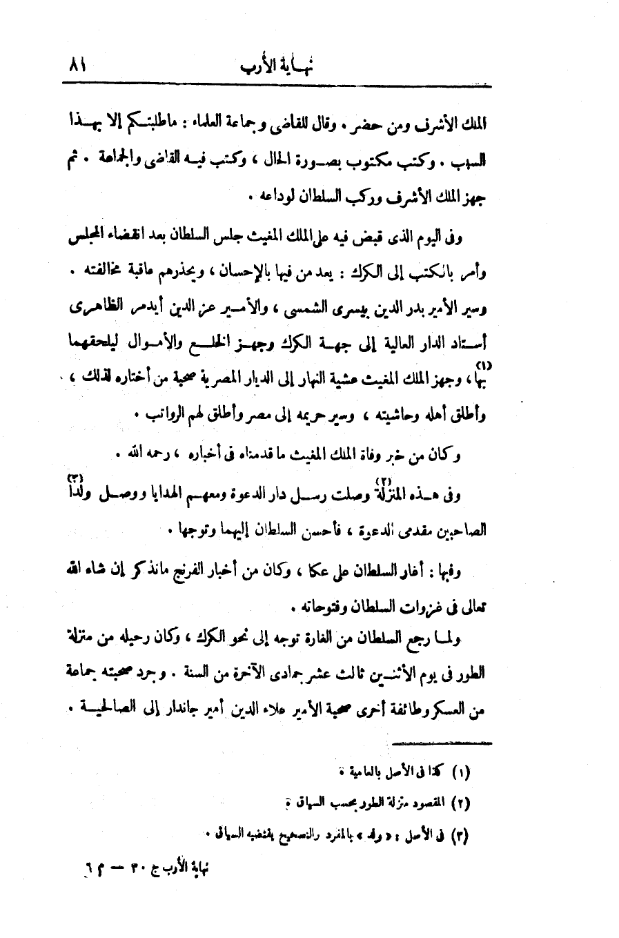 وفى اليوم الذى قبض فيه على الملك المغيث جلس السلطان بعد انقضاء المجلس وأمر بالكتب إلى الكرك: بعد من فيها بالإحسان، ويحذرهم عاقبة مخالفته.