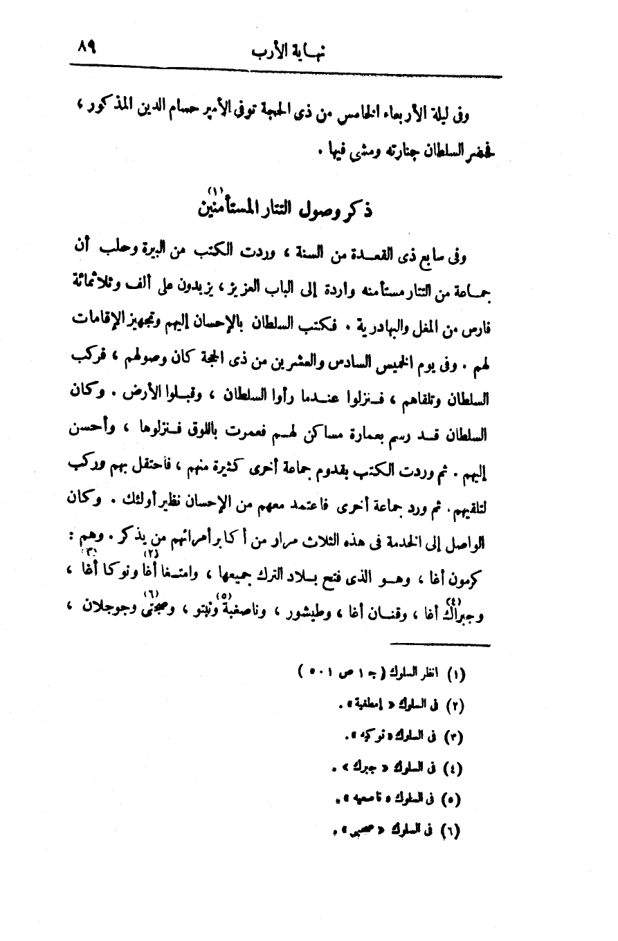 كرمون أغا، وهو الذى فتح بلاد الترك جميعها، وامتغا أغا «2» ونوكا أغا «3» ، وجبراك «4» أغا، وقنان أغا، وطيشور، وناصغبة «5» ونبتو، وصحبتى «6» وجوجلان،
