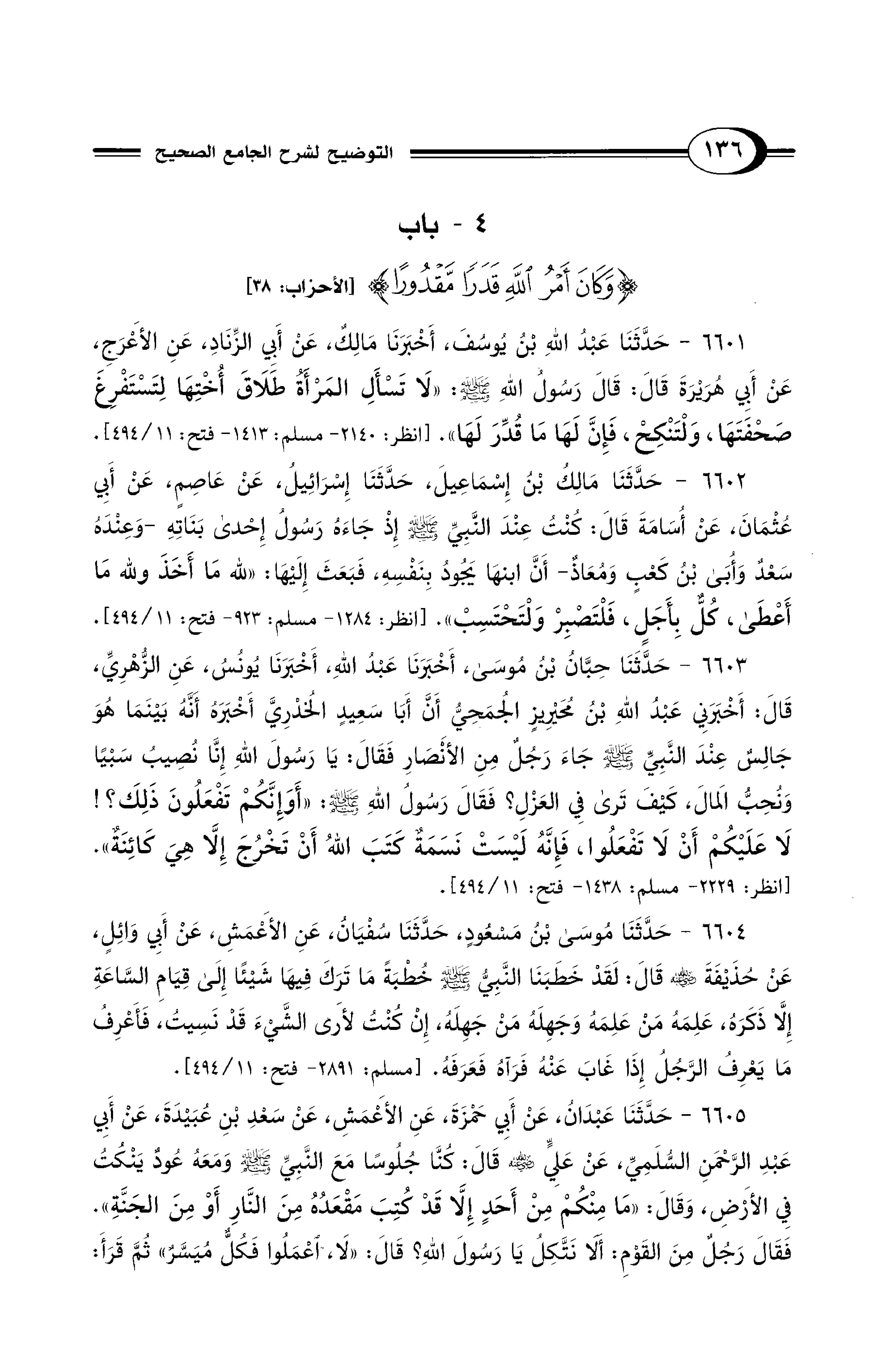 4 - باب {وَكَانَ أَمْرُ اللهِ قَدَرًا مَقْدُورًا} [الأحزاب: 38]