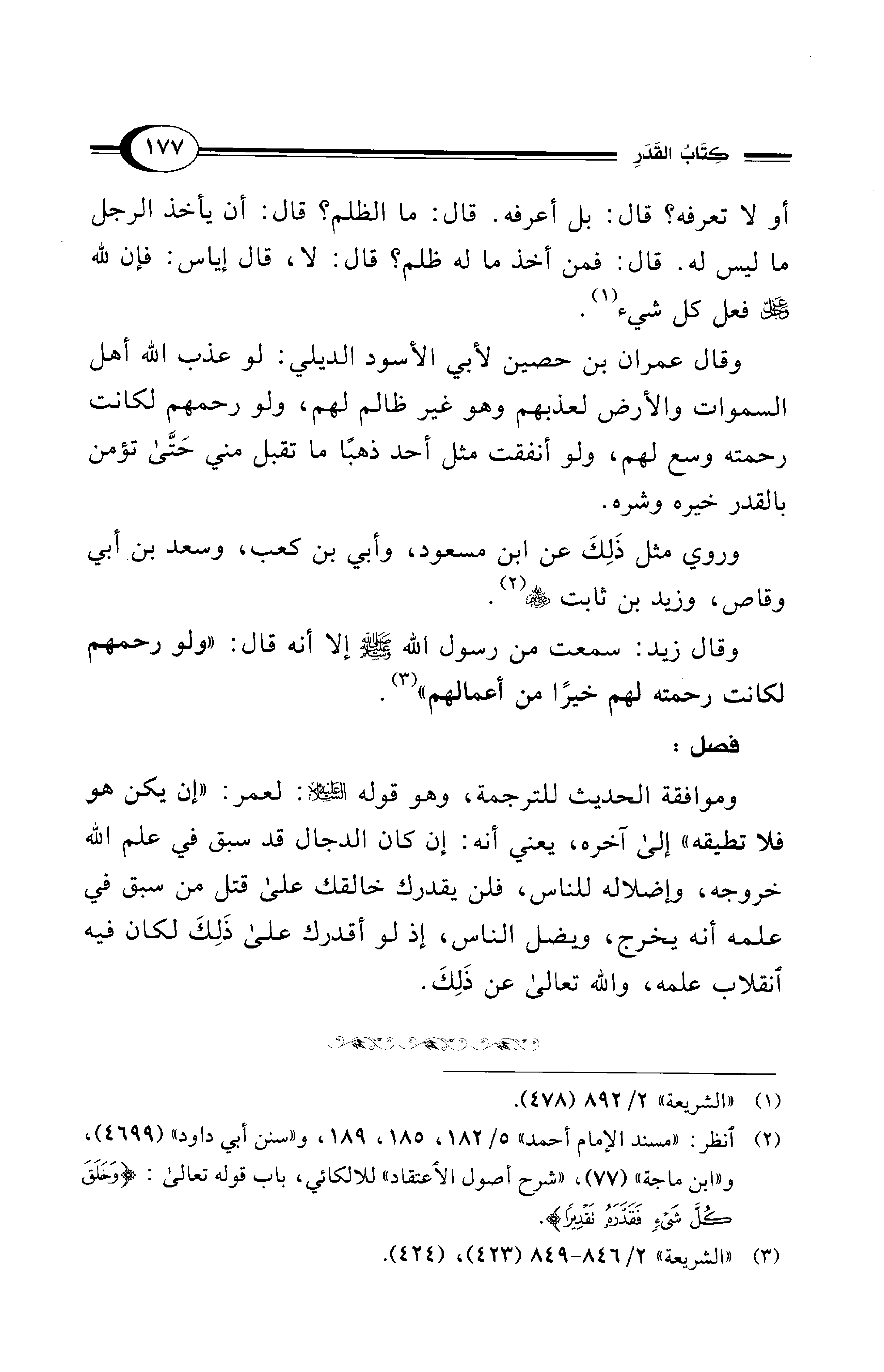 (¬2) انظر: "مسند الإمام أحمد" 5/ 182، 185، 189، و"سنن أبي داود" (4699)، و"ابن ماجة" (77)، "شرح أصول الاعتقاد" للالكائي، باب قوله تعالى: {وَخَلَقَ كُلَّ شَيْءٍ فَقَدَّرَهُ تَقْدِيرًا}.