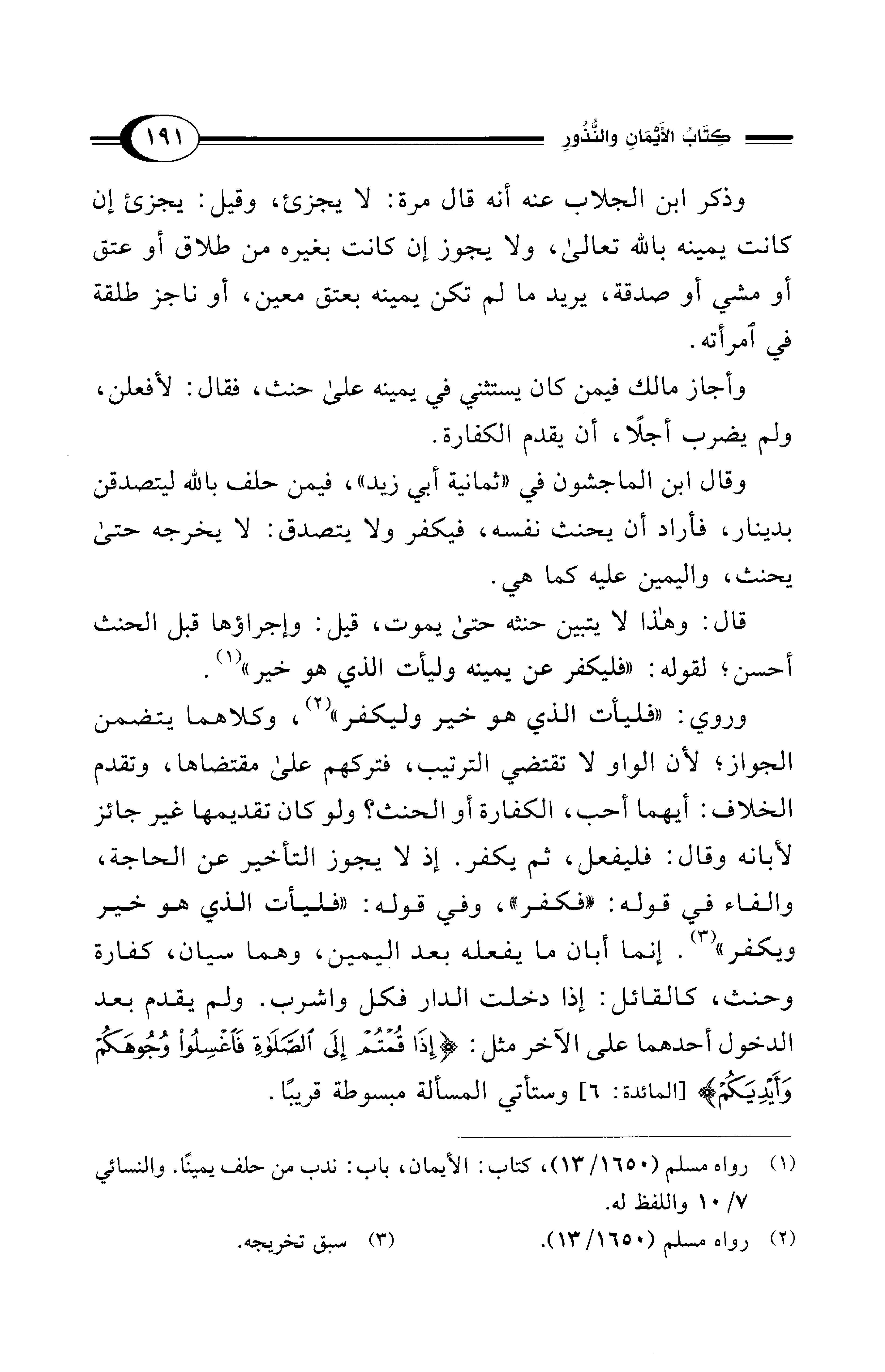 وروي: "فليأت الذي هو خير وليكفر" (¬2)، وكلاهما يتضمن الجواز؛ لأن الواو لا تقتضي الترتيب، فتركهم على مقتضاها، وتقدم الخلاف: أيهما أحب، الكفارة أو الحنث؟ ولو كان تقديمها غير جائز لأبانه وقال: فليفعل، ثم يكفر. إذ لا يجوز التأخير عن الحاجة، والفاء في قوله: "فكفر"، وفي قوله: "فليأت الذي هو خير ويكفر" (¬3). إنما أبان ما يفعله بعد اليمين، وهما سيان، كفارة وحنث، كالقائل: إذا دخلت الدار فكل واشرب. ولم يقدم بعد الدخول أحدهما على الآخر مثل: {إِذَا قُمْتُمْ إِلَى الصَّلَاةِ فَاغْسِلُوا وُجُوهَكُمْ وَأَيْدِيَكُمْ} [المائدة: 6] وستأتي المسألة مبسوطة قريبًا.