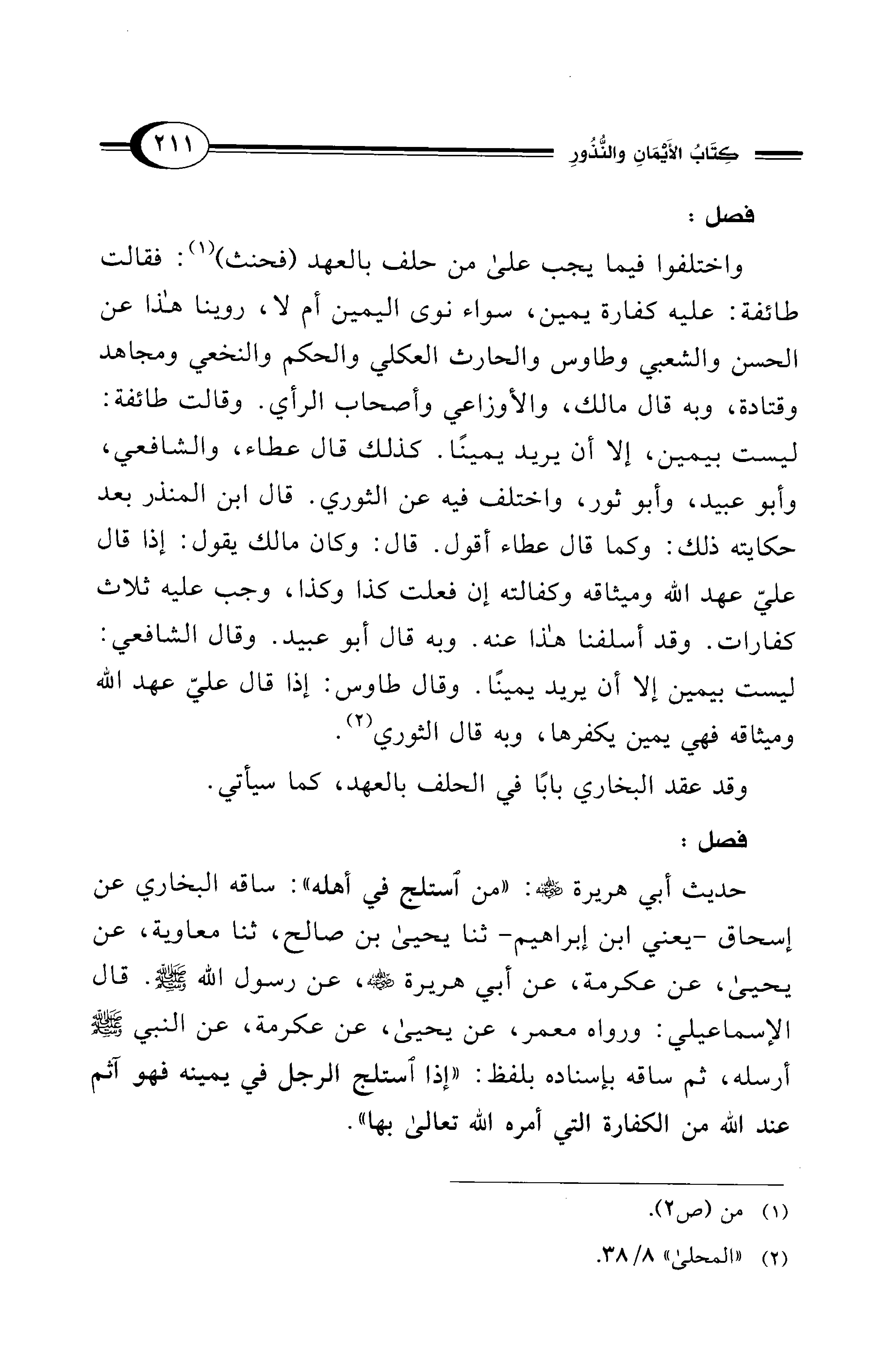 وقد عقد البخاري بابًا في الحلف بالعهد، كما سيأتي.
