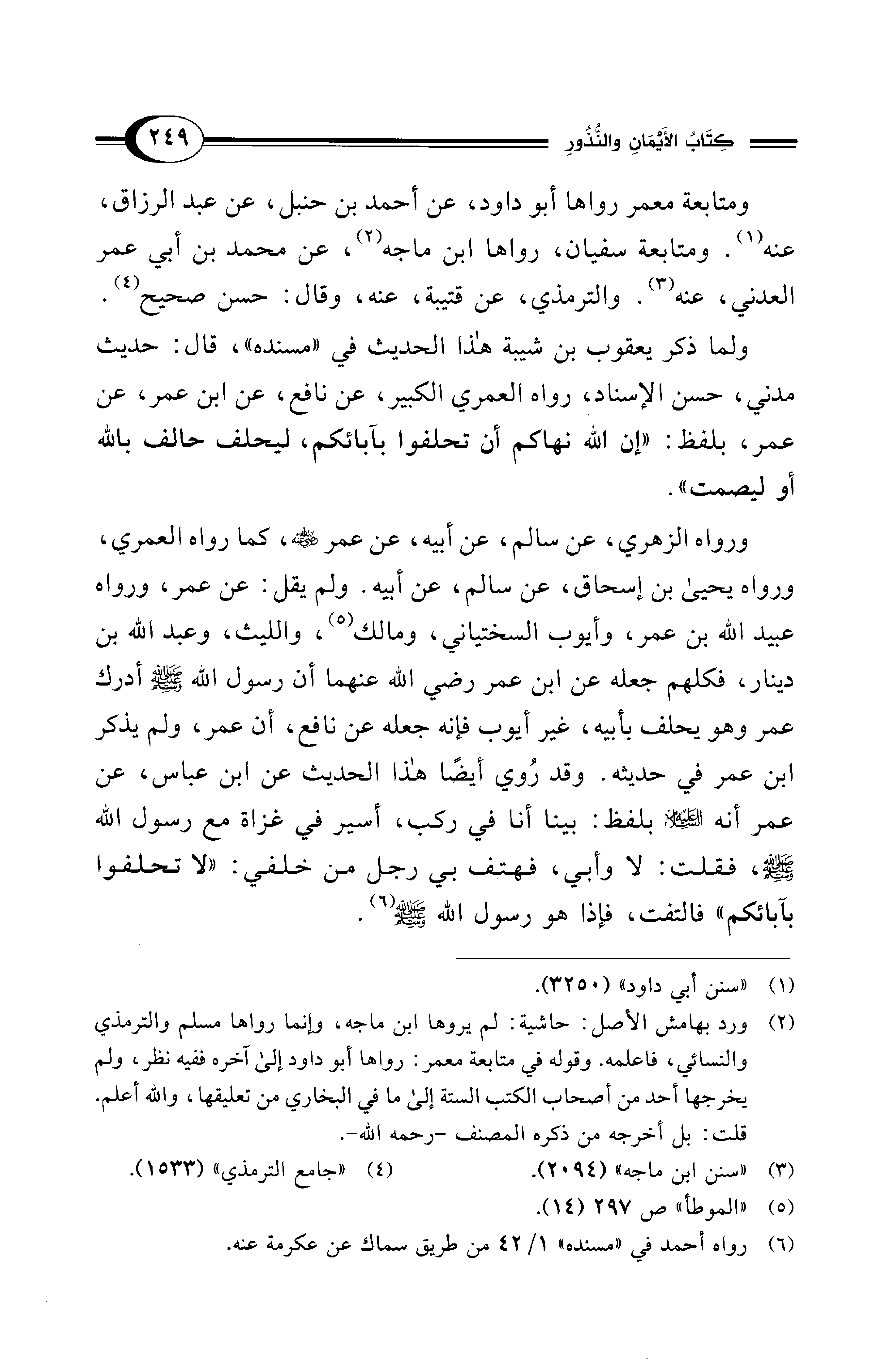(¬2) ورد بهامش الأصل: حاشية: لم يروها ابن ماجه، وإنما رواها مسلم والترمذي والنسائي، فاعلمه. وقوله في متابعة معمر: رواها أبو داود إلى آخره ففيه نظر، ولم يخرجها أحد من أصحاب الكتب الستة إلى ما في البخاري من تعليقها، والله أعلم.