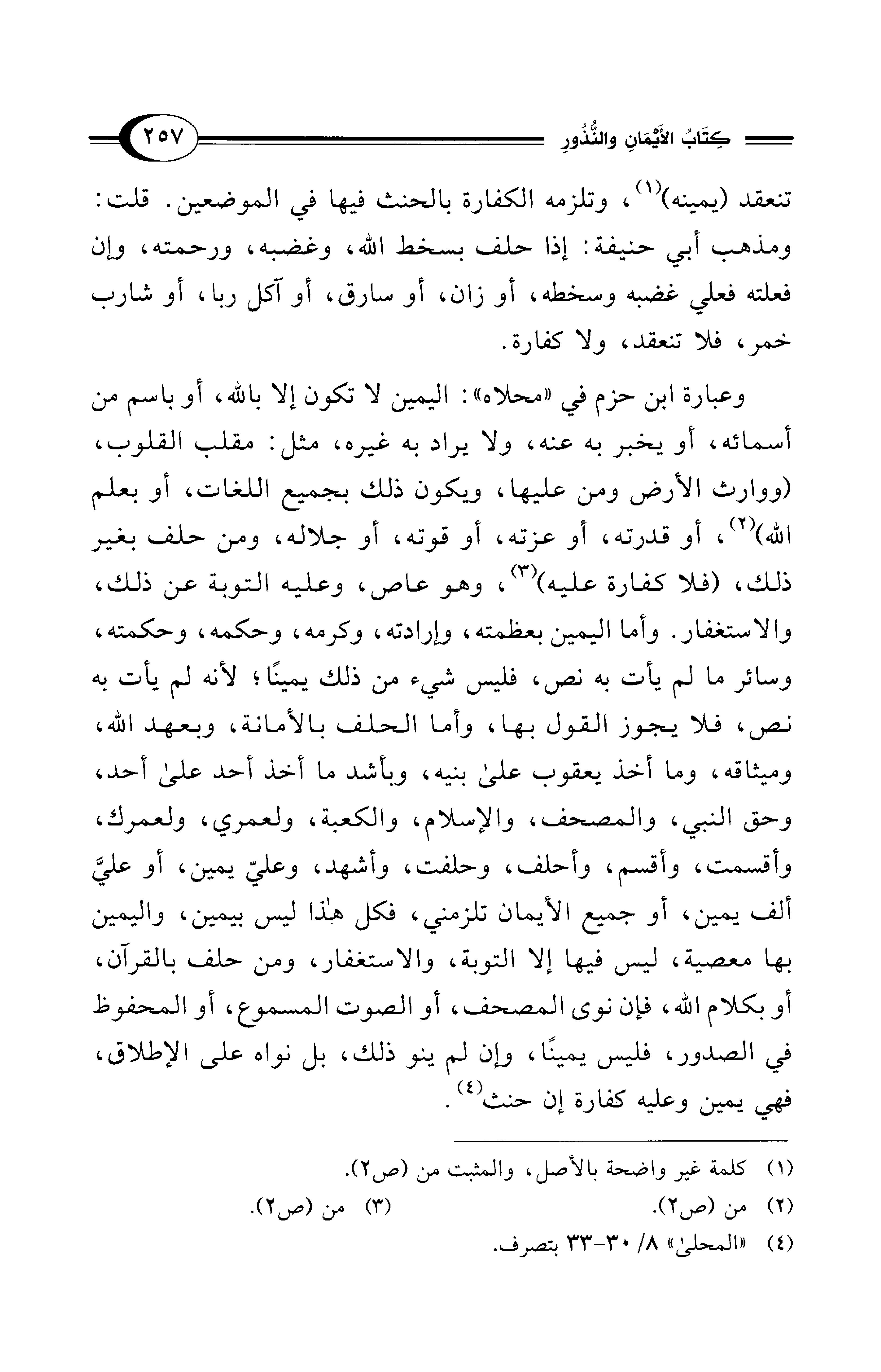 وعبارة ابن حزم في "محلاه": اليمين لا تكون إلا بالله، أو باسم من