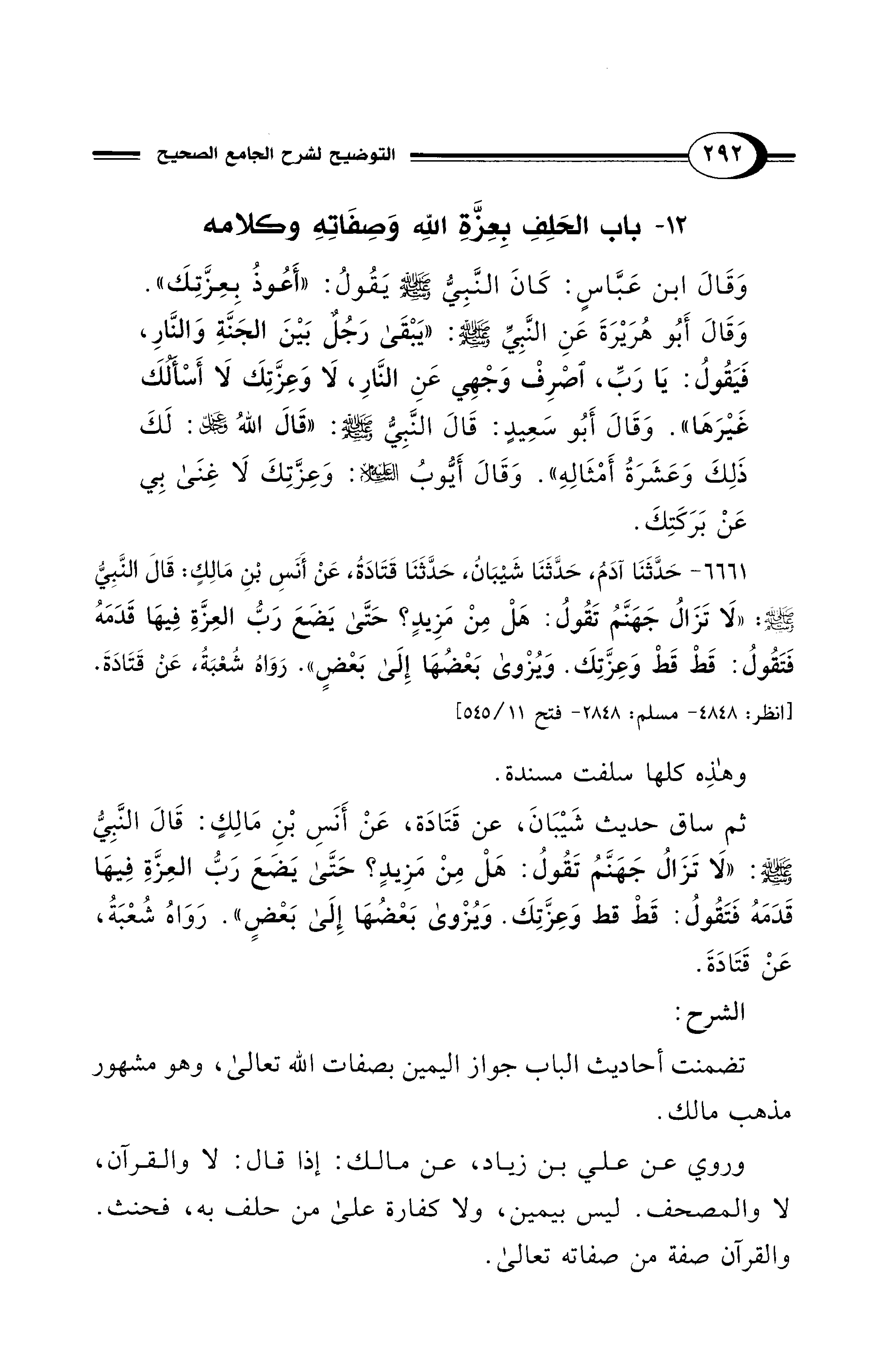 12 - باب الحَلِفِ بِعِزَّةِ اللهِ وَصِفَاتِهِ وَكَلاَمِهِ