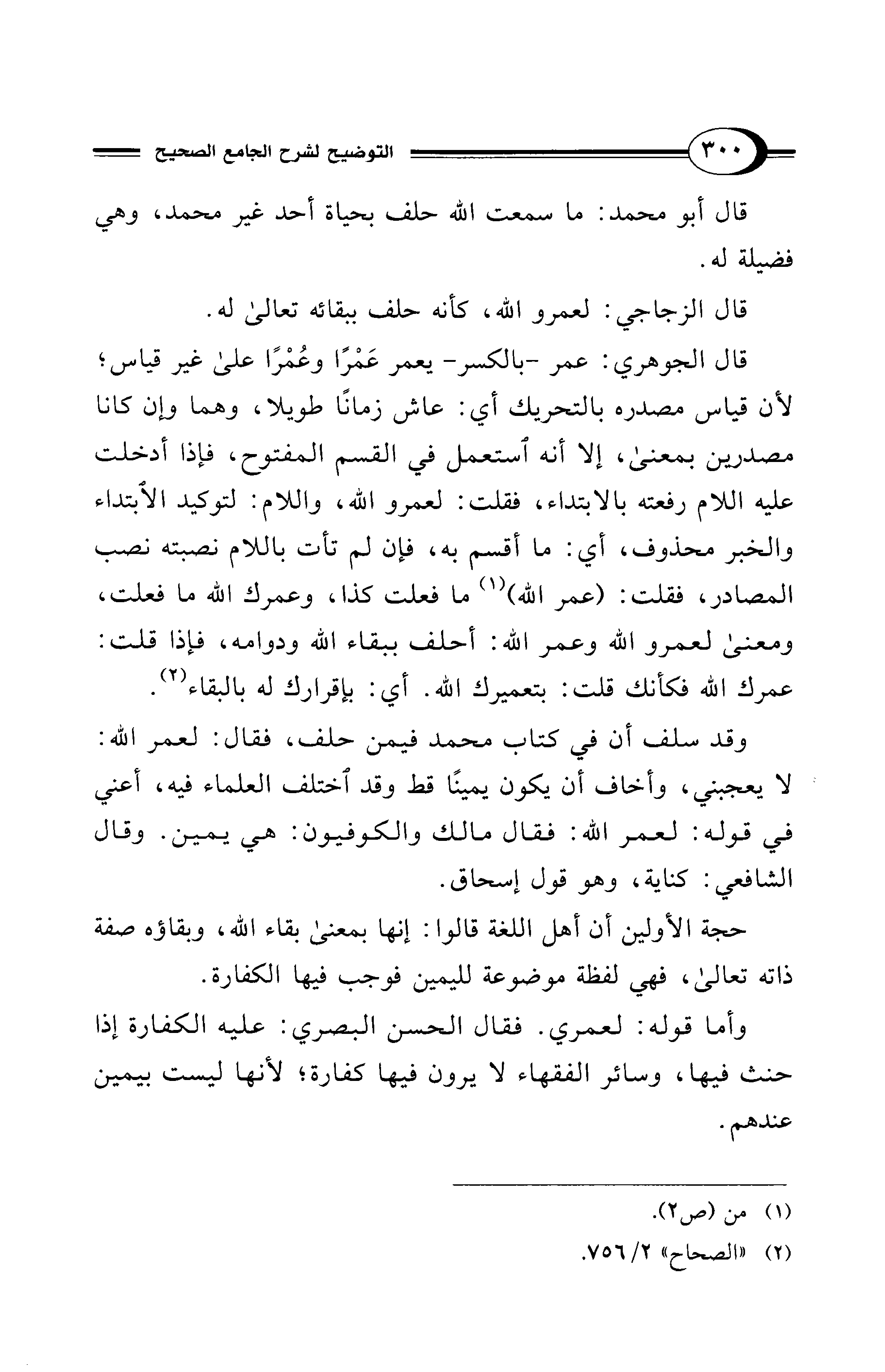 وقد سلف أن في كتاب محمد فيمن حلف، فقال: لعمر الله: لا يعجبني، وأخاف أن يكون يمينًا قط وقد اختلف العلماء فيه، أعني في قوله: لعمر الله: فقال مالك والكوفيون: هي يمين. وقال الشافعي: كناية، وهو قول إسحاق.